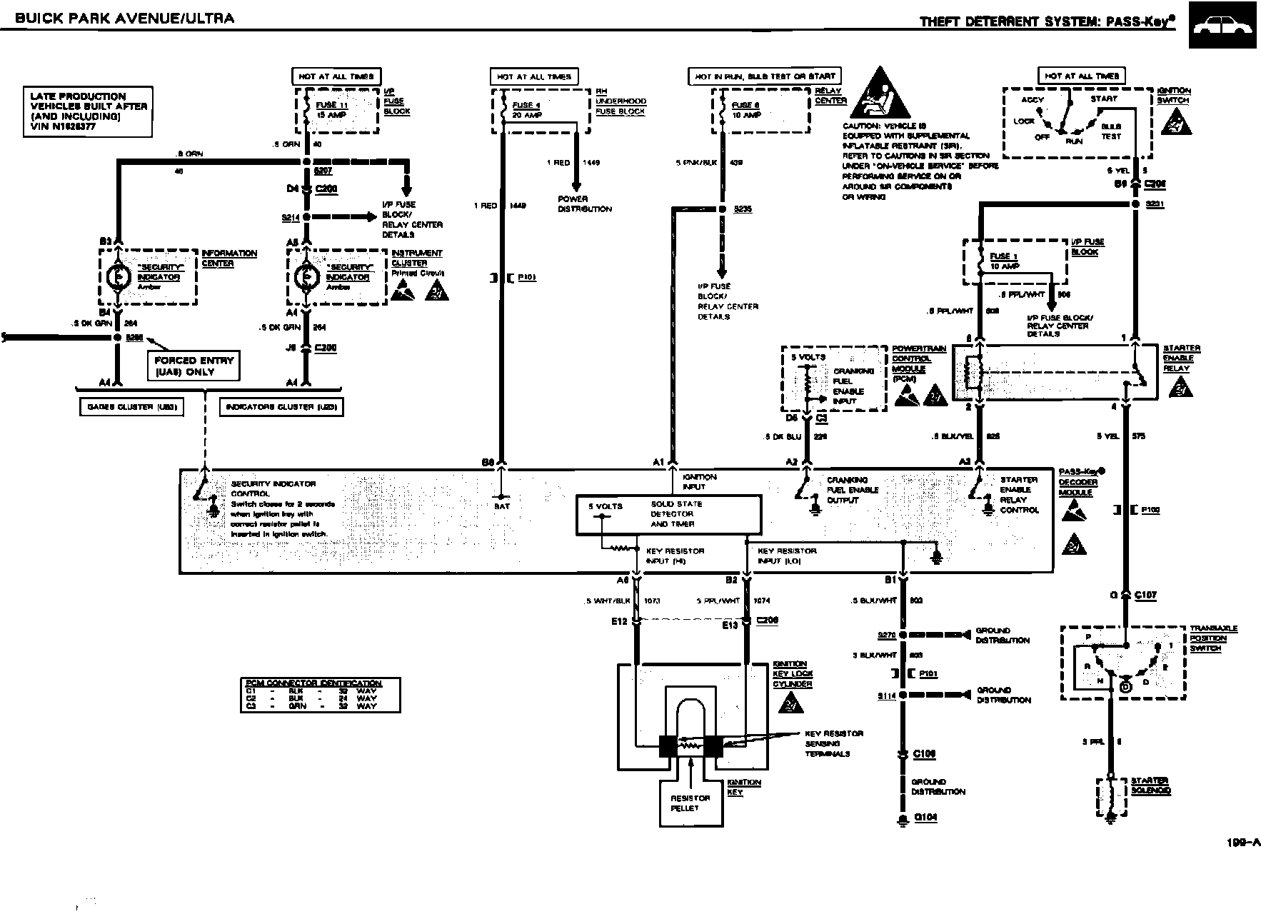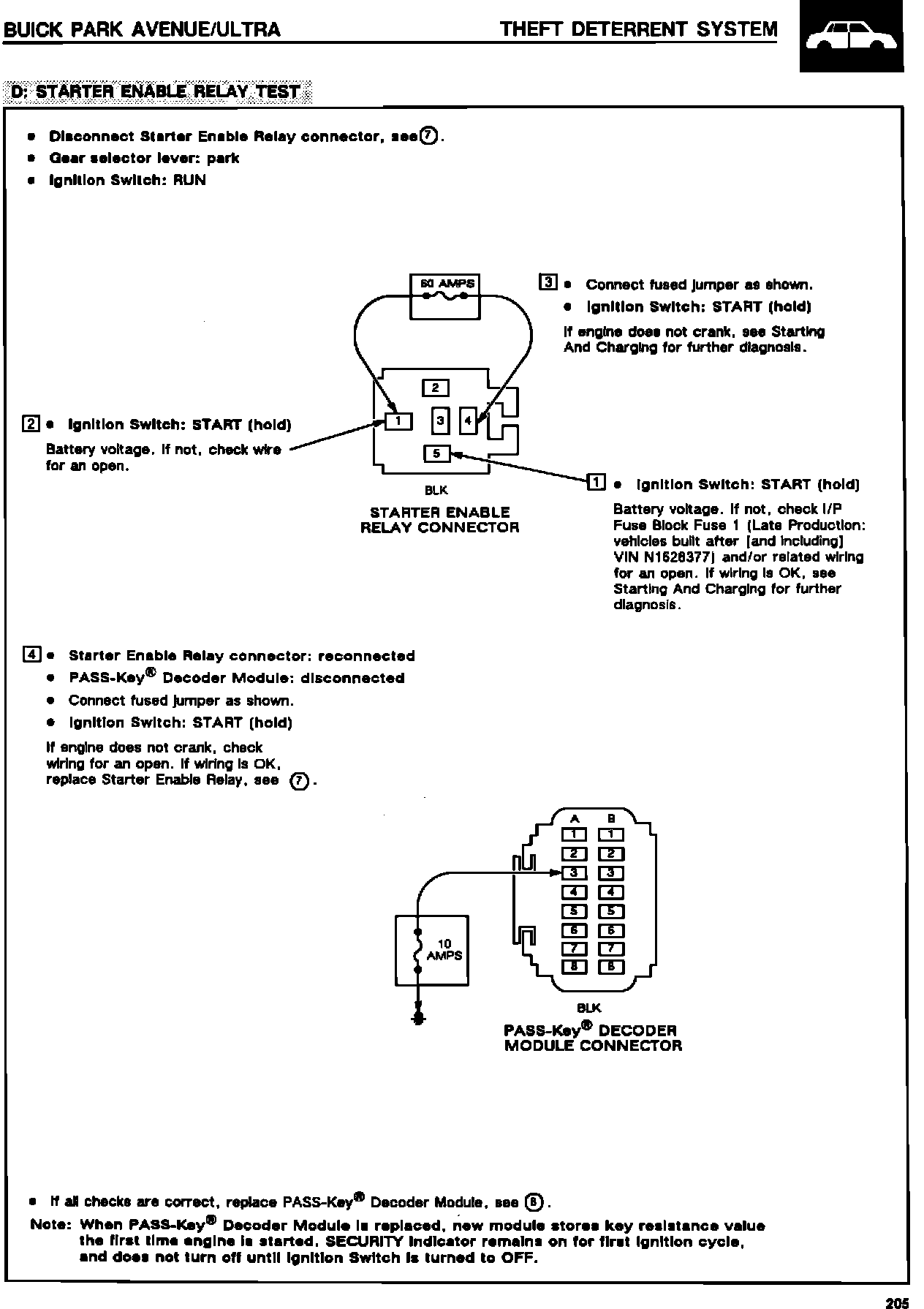 On all 1991-92 Park Avenue/Ultras built before VIN N1628377, replace the starter enable relay with Part Number 25609047 (refer to appropriate service manual for starter enable relay location) and change the wiring as per the procedure. On 1992 Park Avenue/Ultras built after (and including) VIN N1628377, diagnose "no crank" condition using the service manual diagnostic procedures, together with the enclosed updated diagnostic information where applicable.