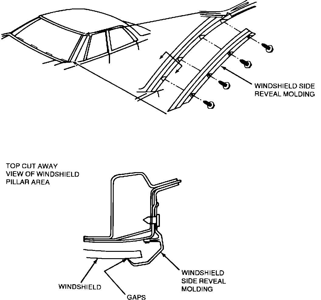WINDSHIELD SIDE REVEAL MOLDING GAPPING TO WINDSHIELD