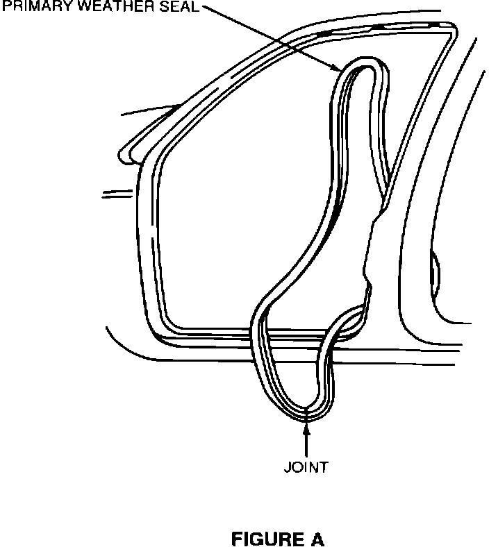 With the door closed, inspect for seal contact with the door. If the problem is one of improper seal contact due to misalignment with the door surface, pull the entire seal off the body flange and reinstall as follows: Position the joint in the center of the rocker and install on flange working forward toward hinge pillar; continue around door opening using care to seat the weatherseal securely onto the flange, particularly in the corners. When the seal is completely installed, go back over the entire length and make sure no material has pulled off the flange. If the leak source is determined to be a result of too much gap between the door and body; door adjustments will be required to close up the gap. Reinspect and road test after corrections are made.