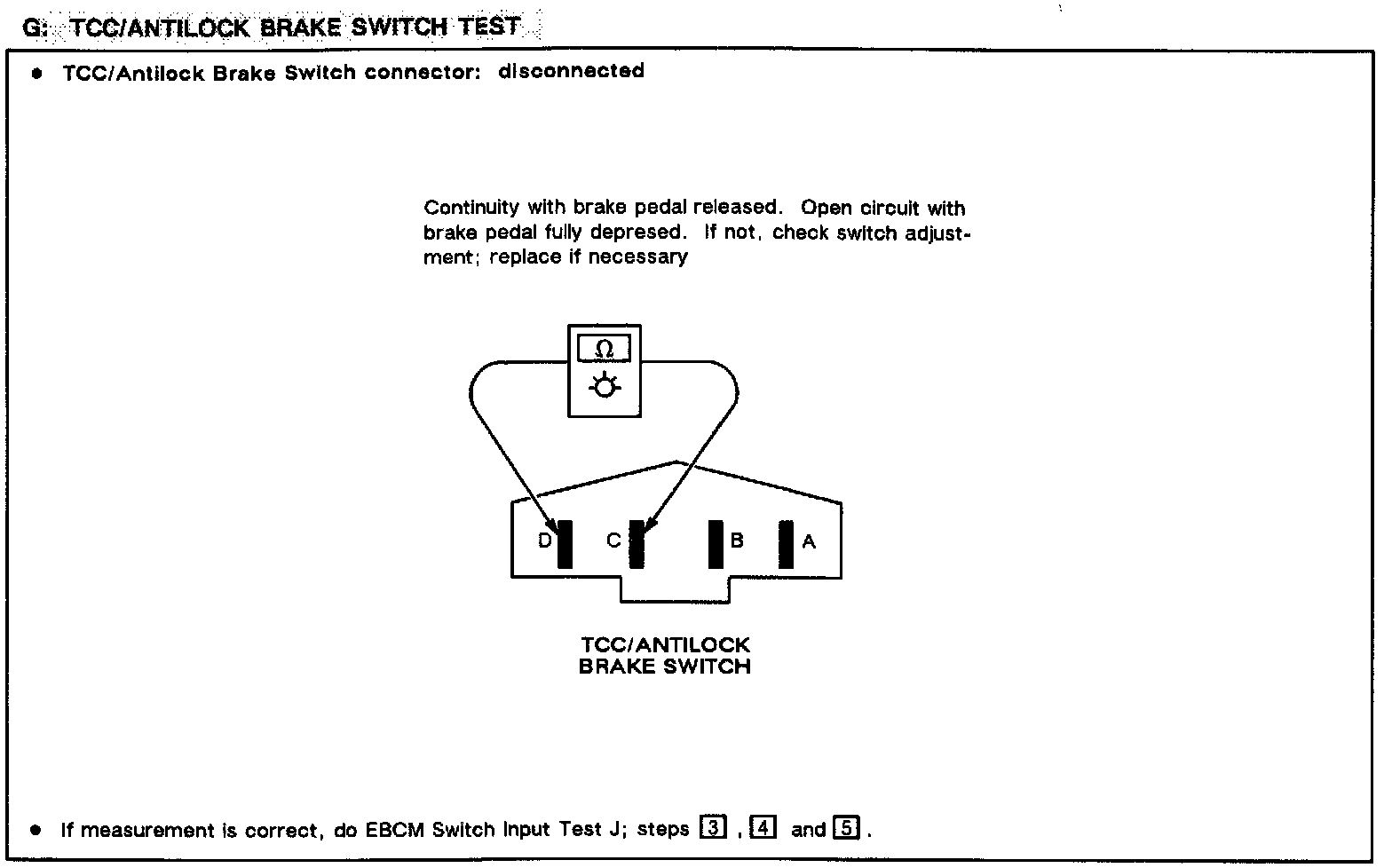 Chart G: TCC/Antilock Brake Switch Test