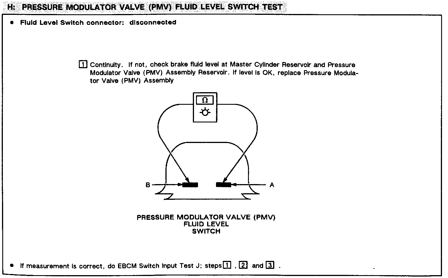 Chart H: PMV Fluid Level Switch Test