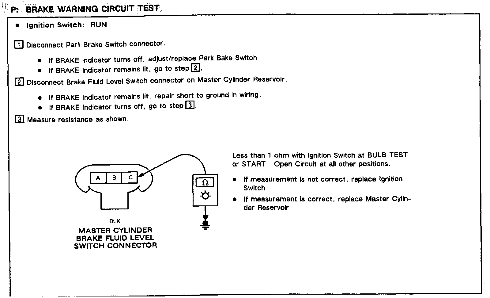 Chart P: Brake Warning Circuit Test