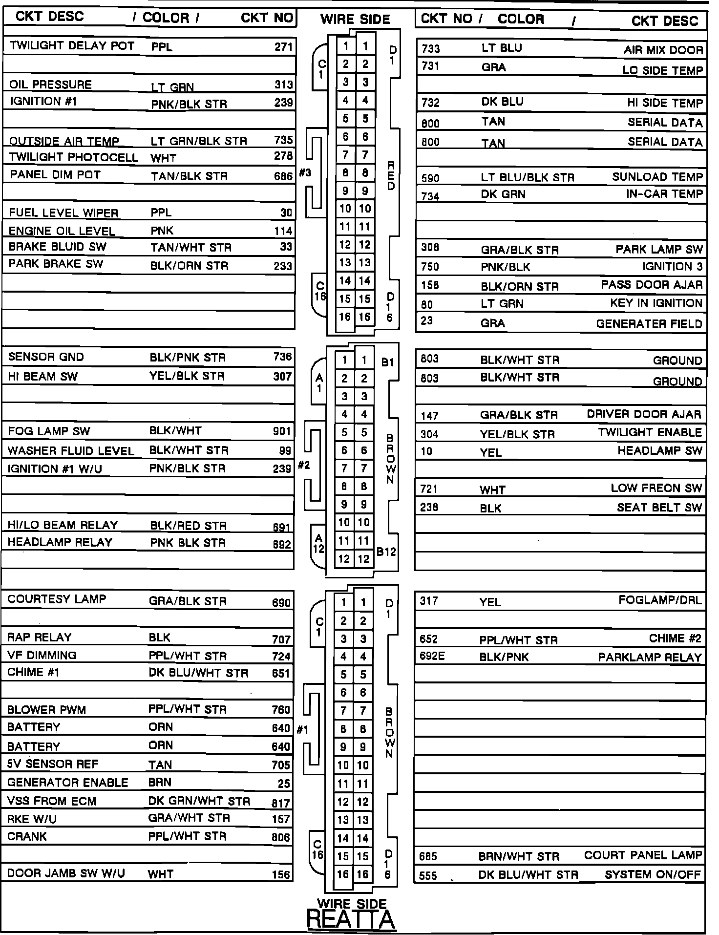 BCM Connector Back View: