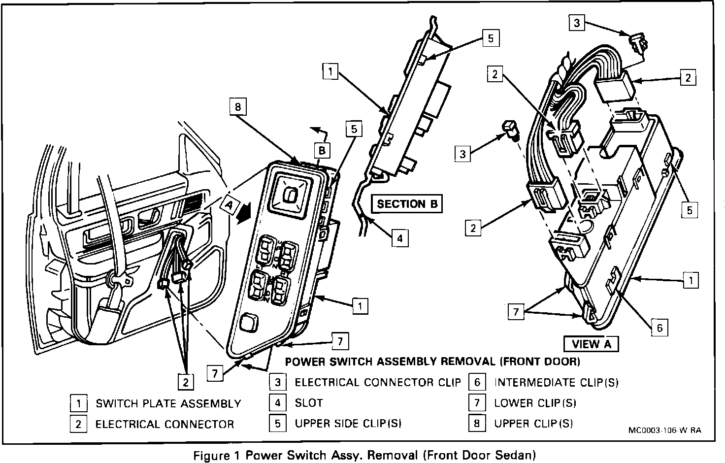 6. Power window switch assembly. Refer to "Power Window and Door Switch Assembly Front Door", in this section.