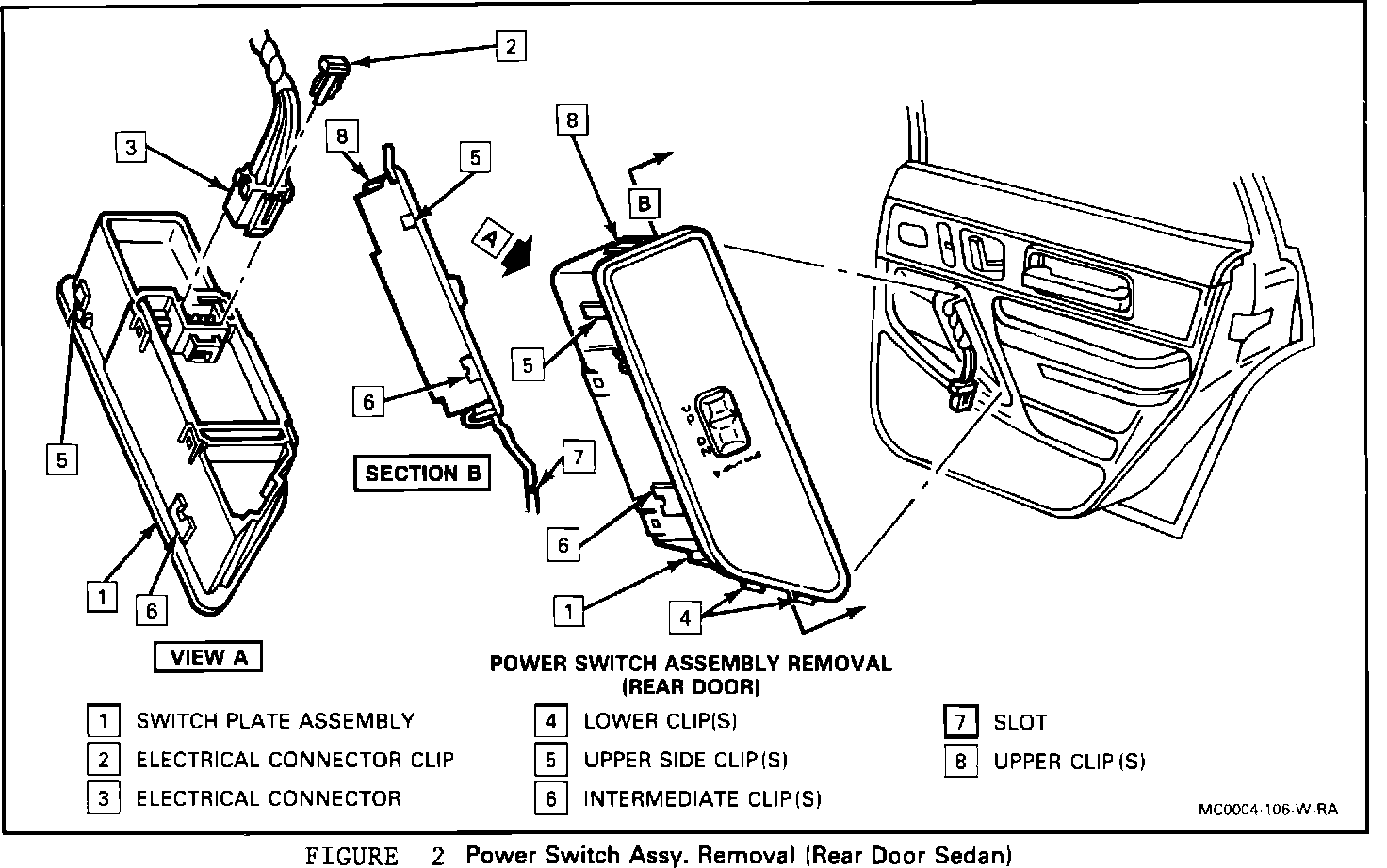 5. Power window switch assembly, if present. Refer to "Power Window and Door Switch assembly" in this section.