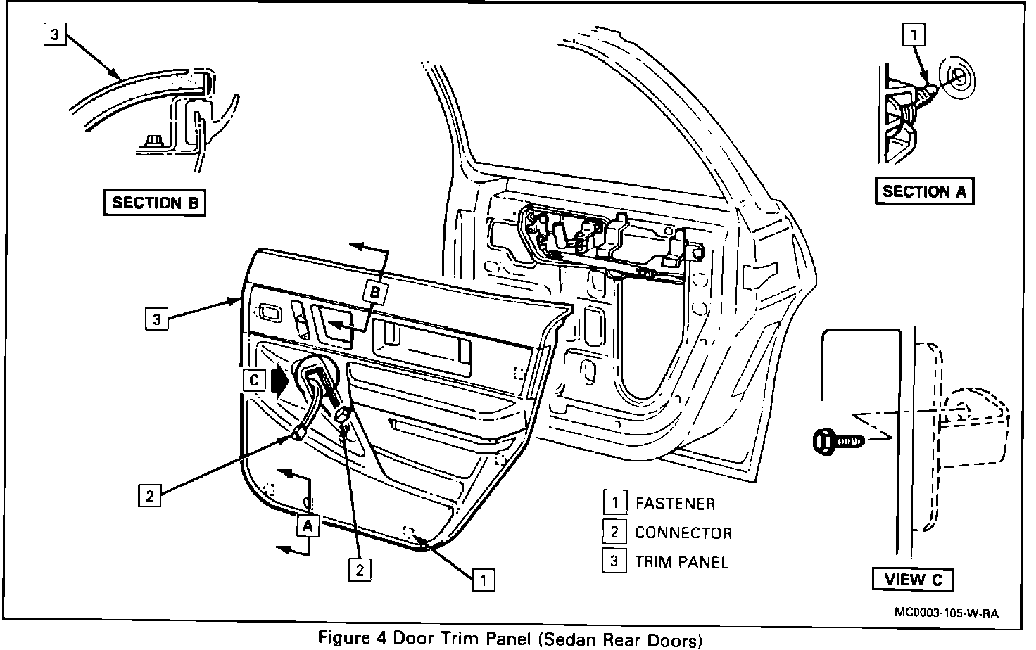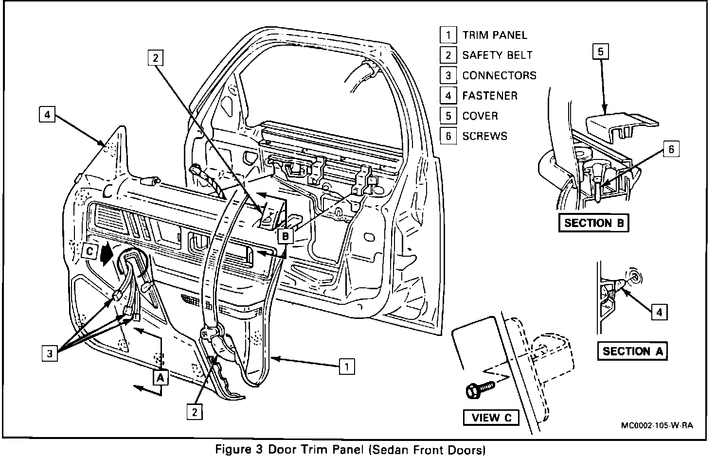 3. Screw to trim panel, Coupe only.