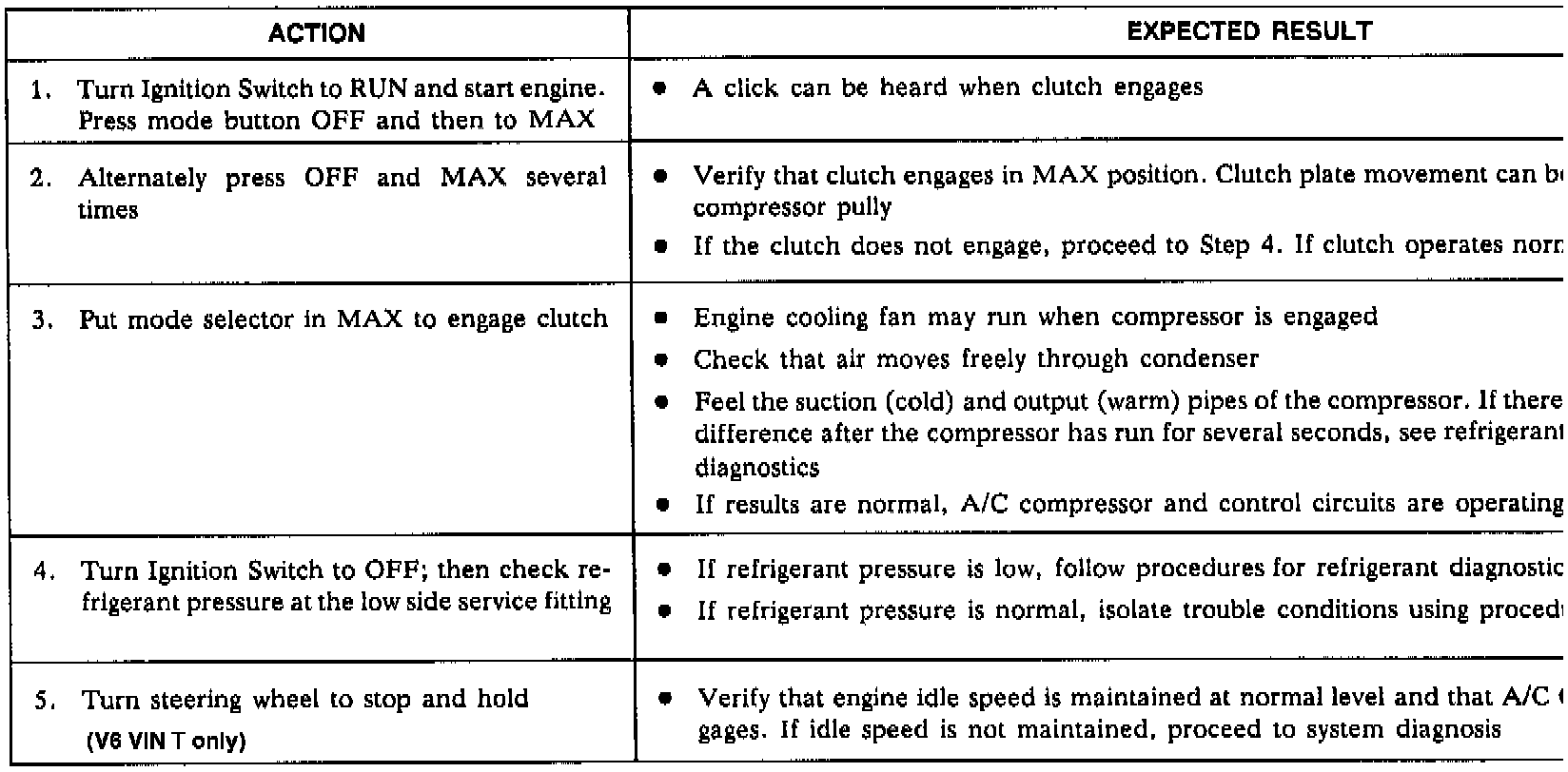 ^ Use the System Check Table a guide to normal A/C compressor operation.