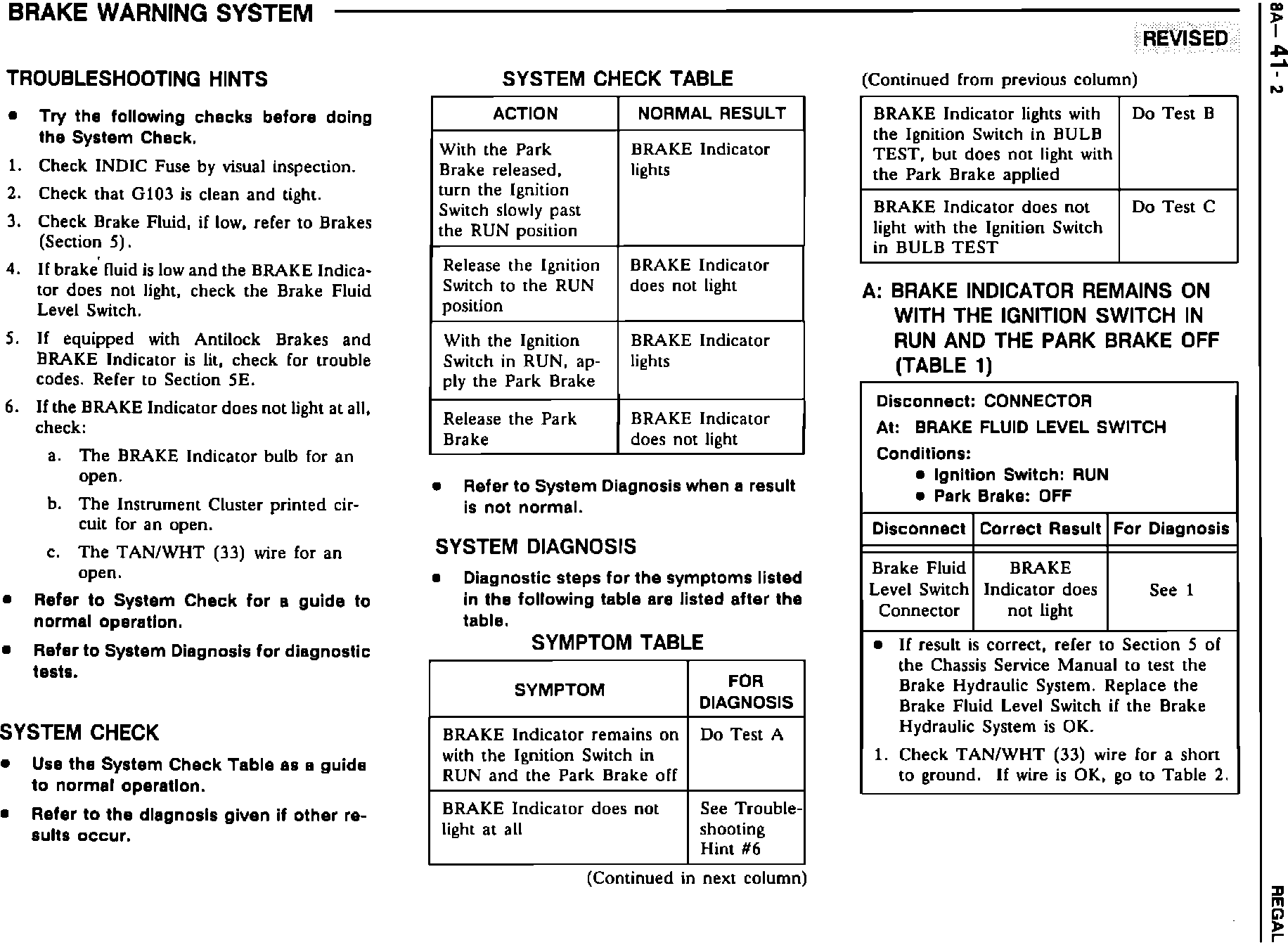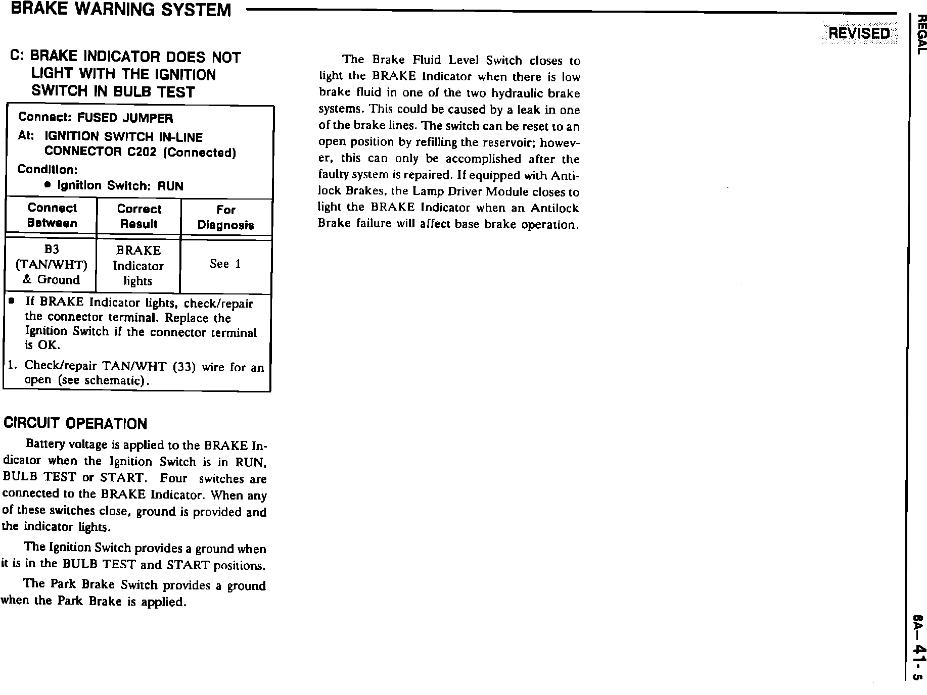 Brake Warning System 8A-41-2, 3, 4, 5