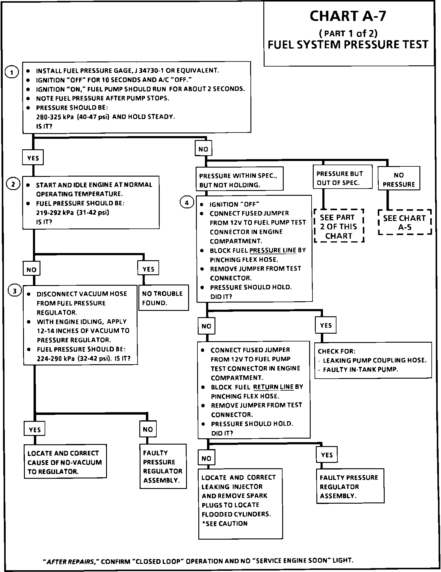 3. The application of 40-46 kPa (12-14" HG) of vacuum to the pressure regulator should result in a fuel pressure less than step 1.