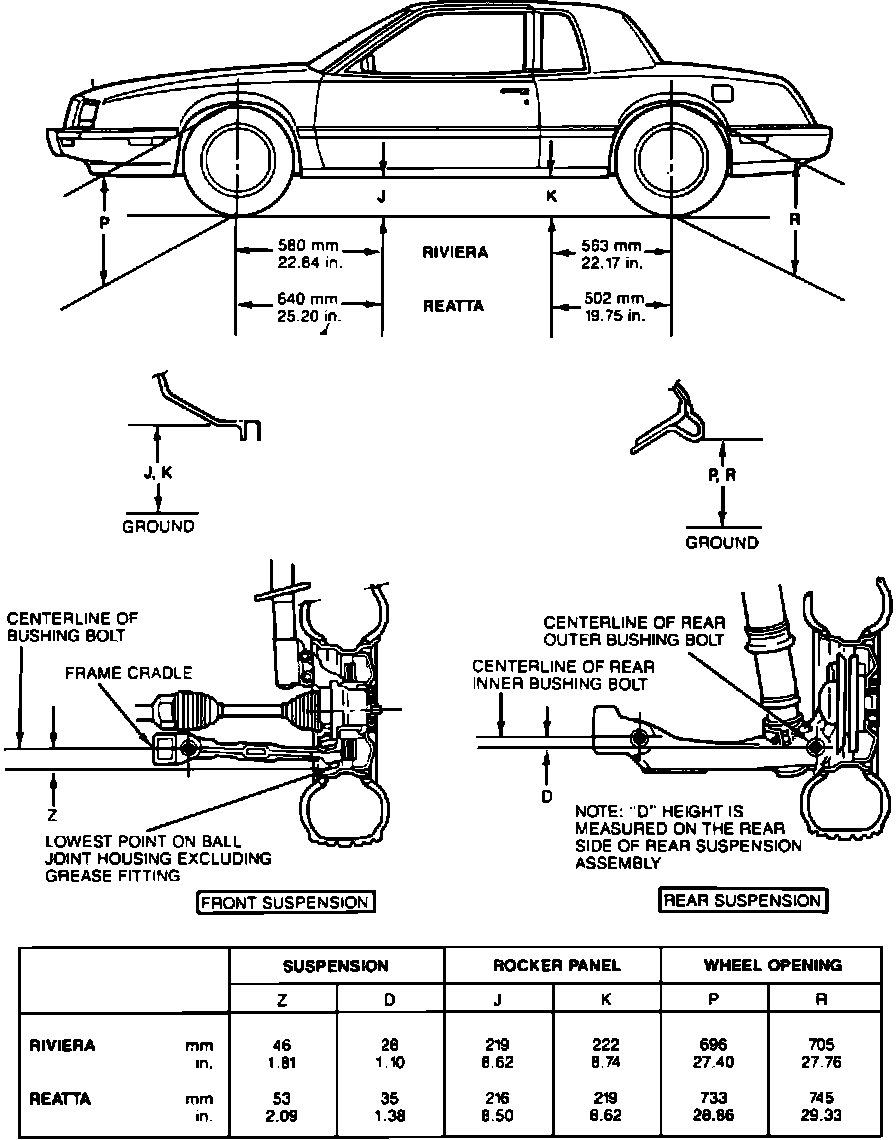 Trim heights are checked with tires at recommended pressure, fuel tank at capacity, front seat in rear position, no passengers and trunk empty, except for spare tire and jack.