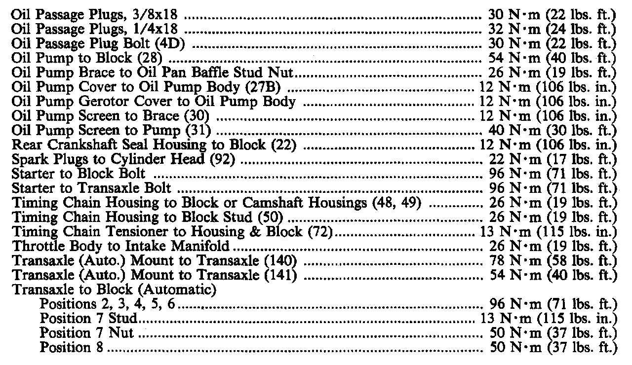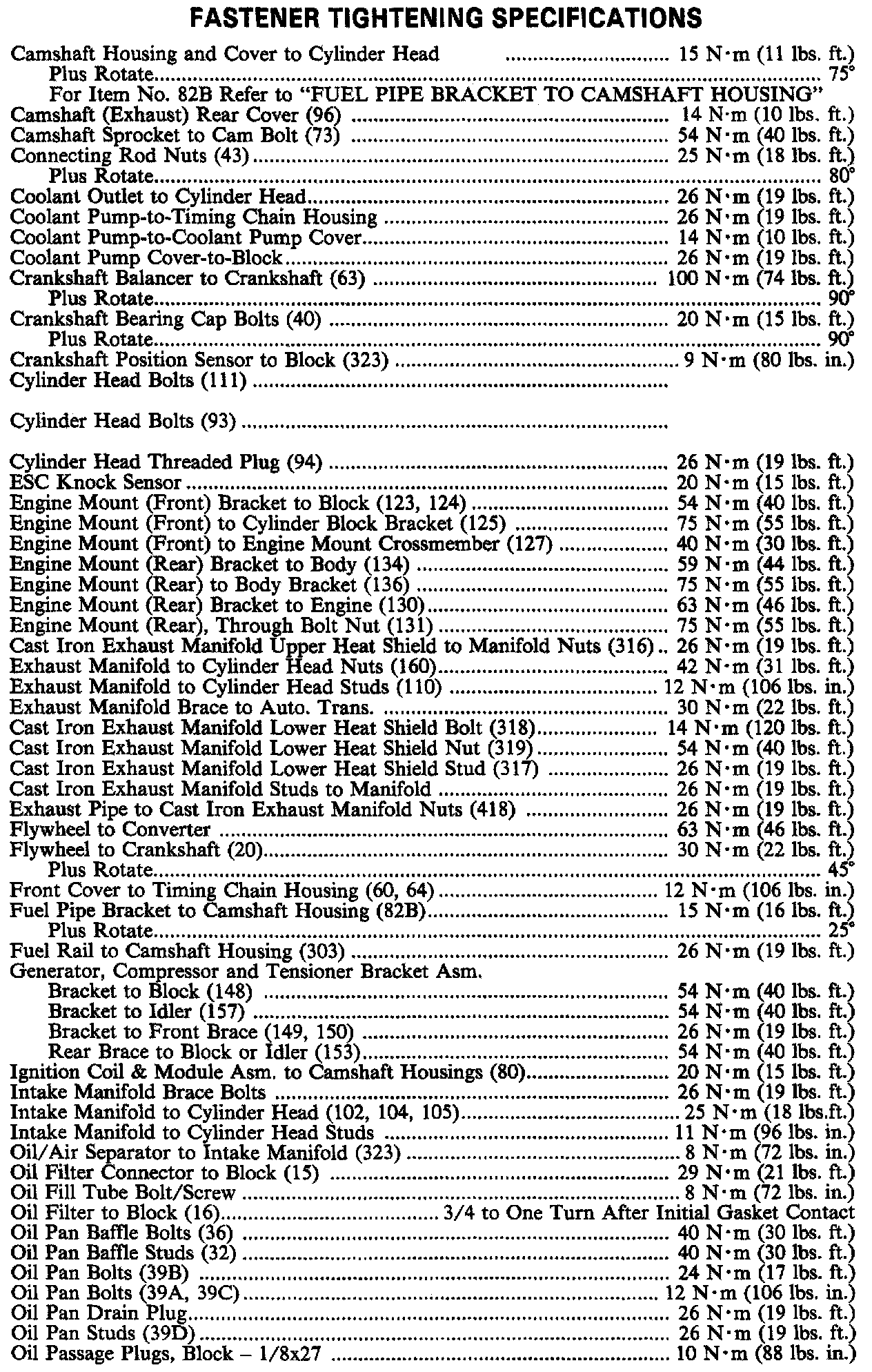 Continued Torque Specifications: