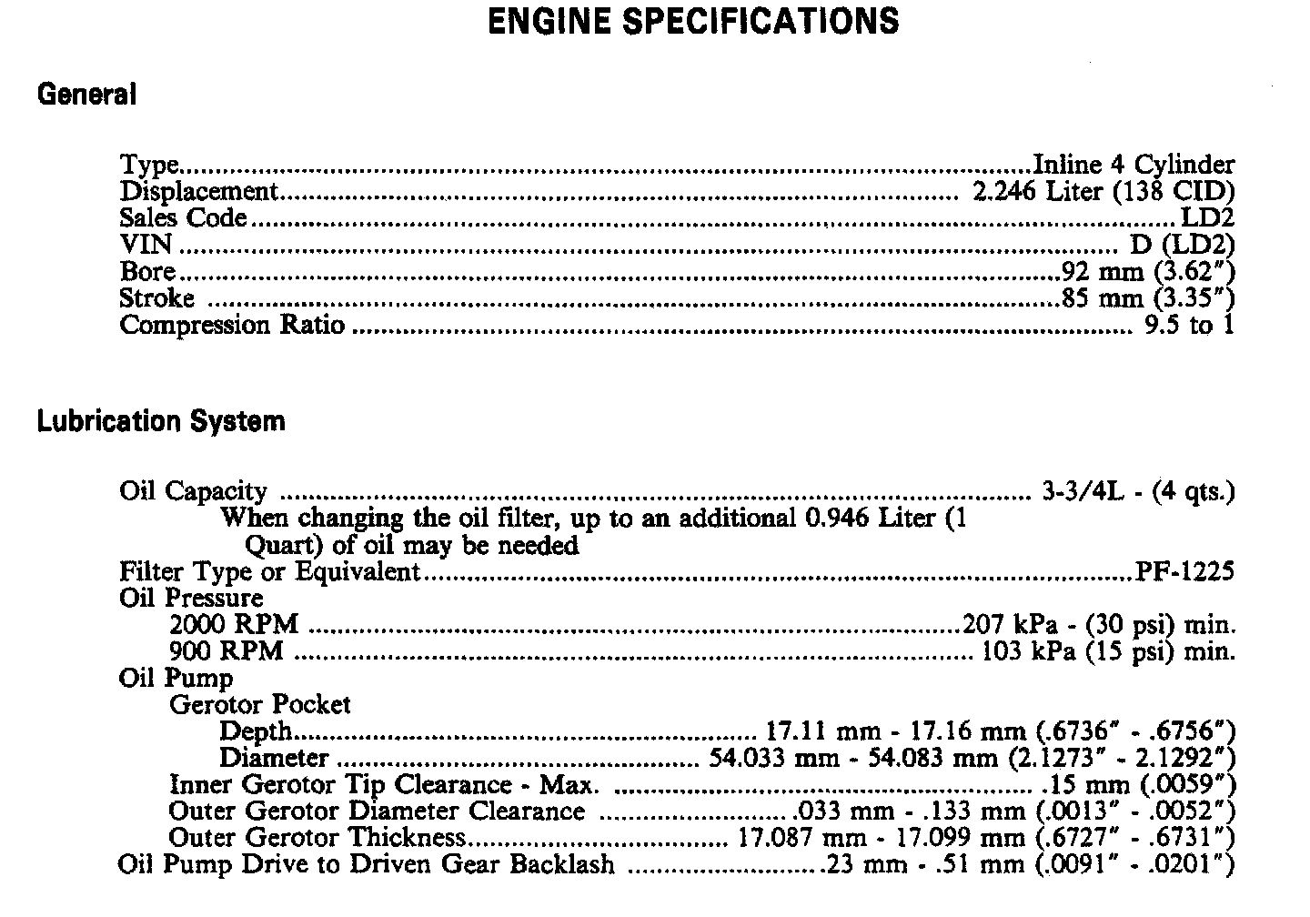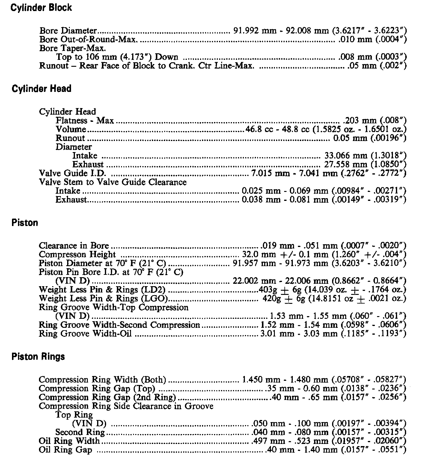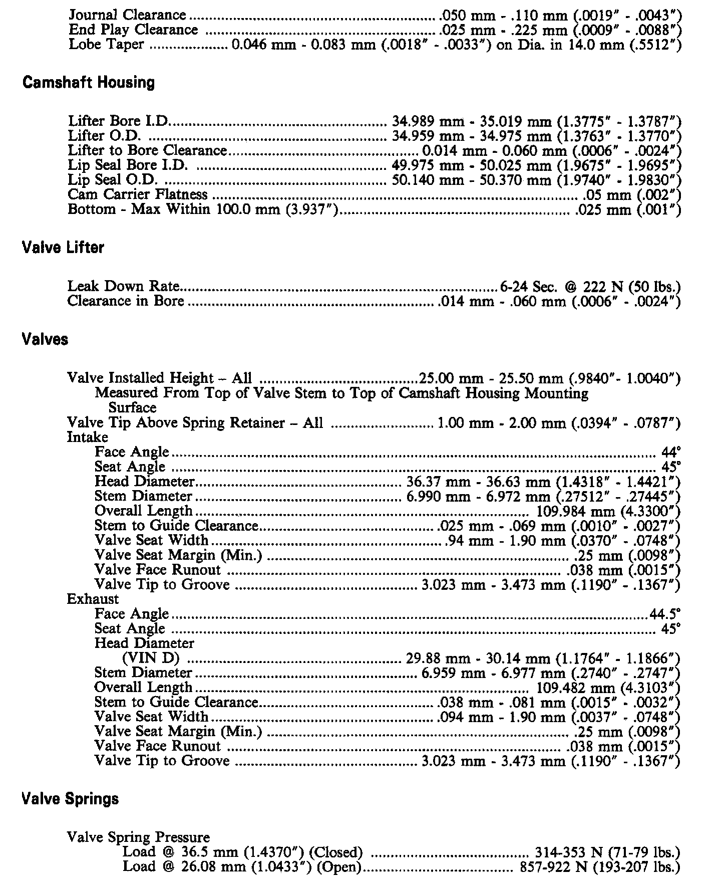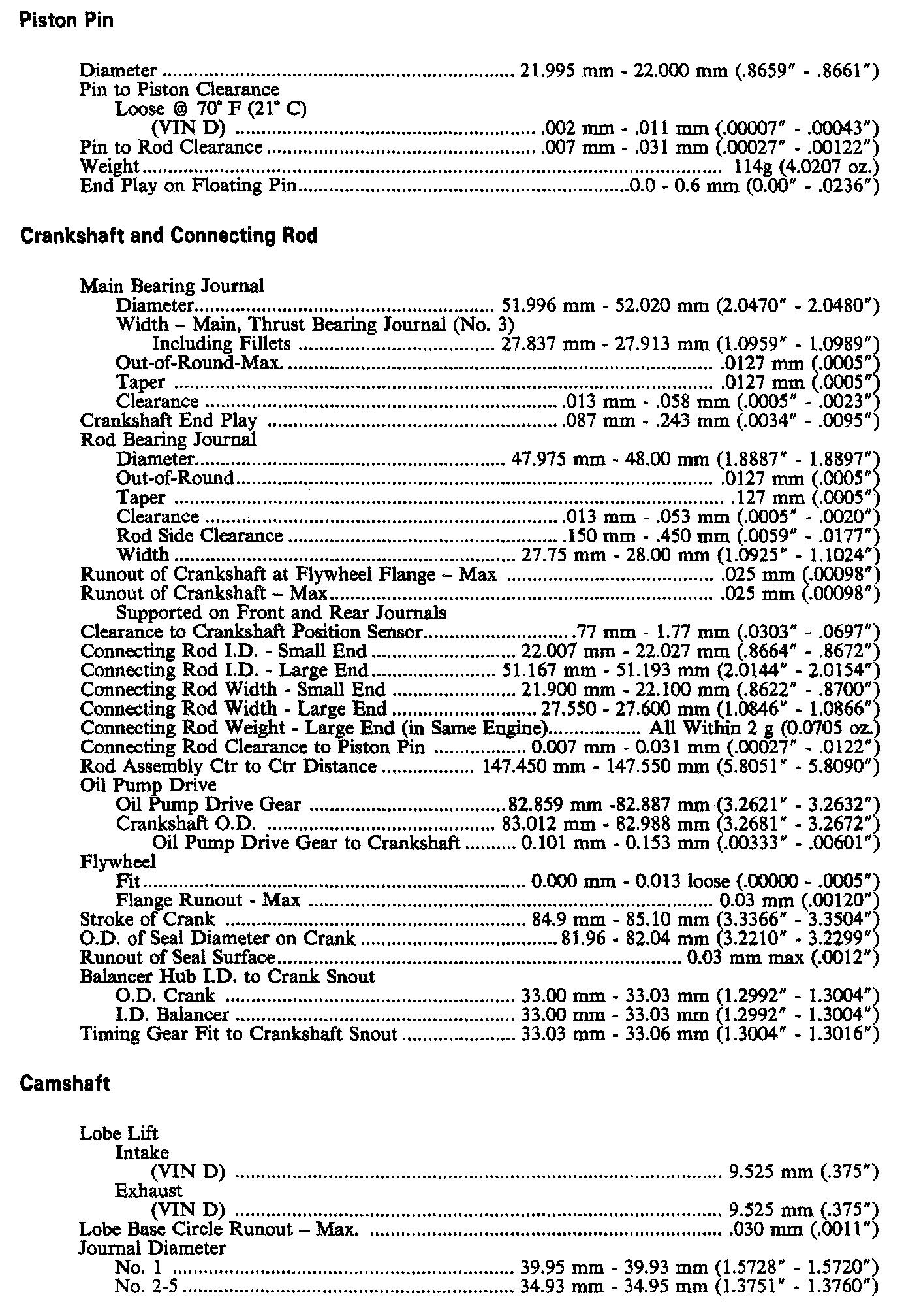 Continued Engine Specifications: