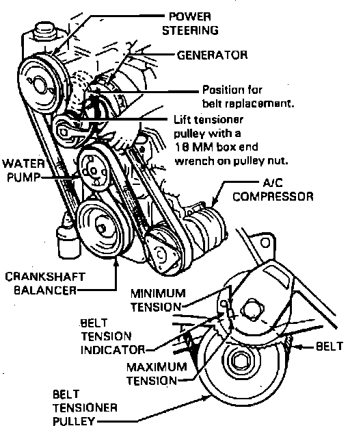 replacement. On 1992 models the right front engine mount must be removed to replace serpentine drive belt.