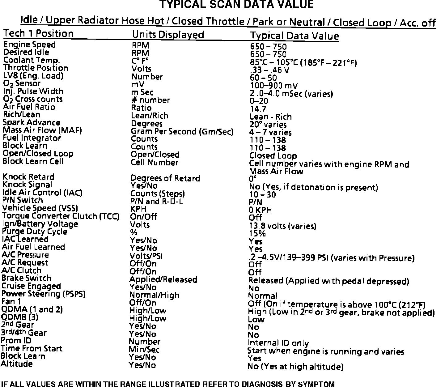 Typical Scan Data Values: