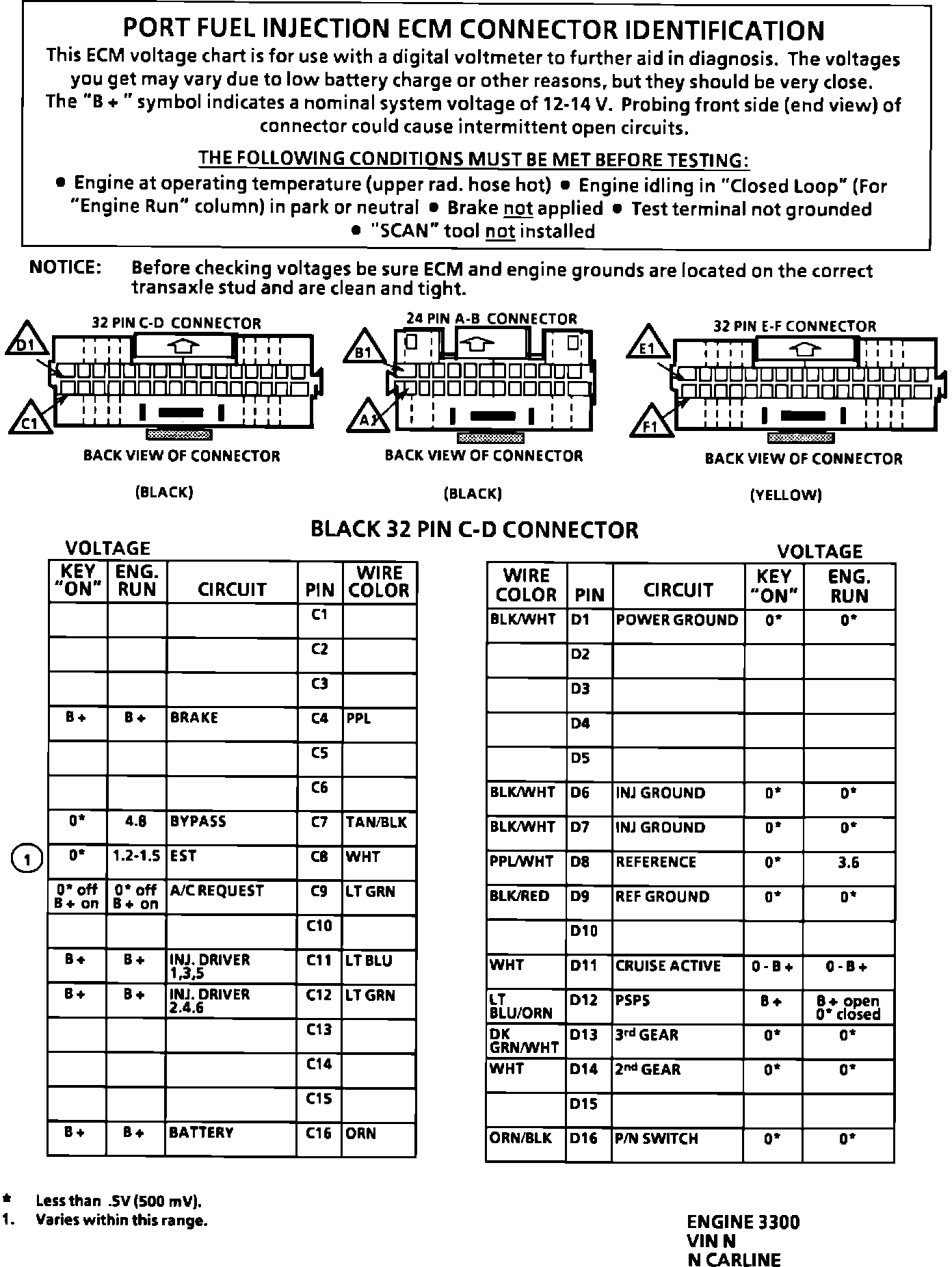 ECM Connector Terminal Identification (Part 1 Of 2):