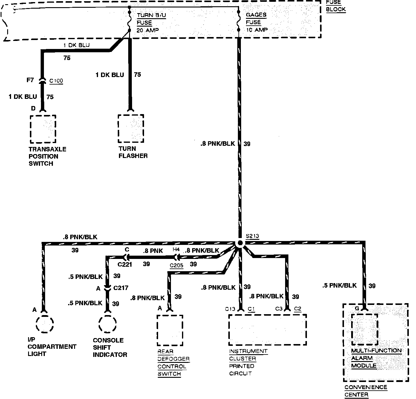 Fuse Block Details (ECM RLYS, Turn, Back-Up Lamps & Gauges):