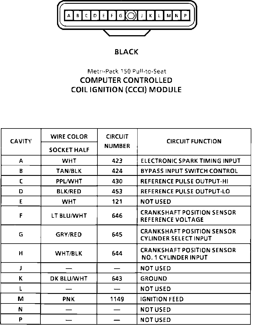 Computer Controlled Coil Ignition (CCCI) Module Connector Face: