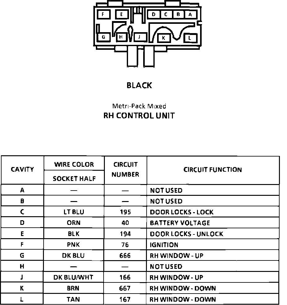 RH Control Unit Connector Face:
