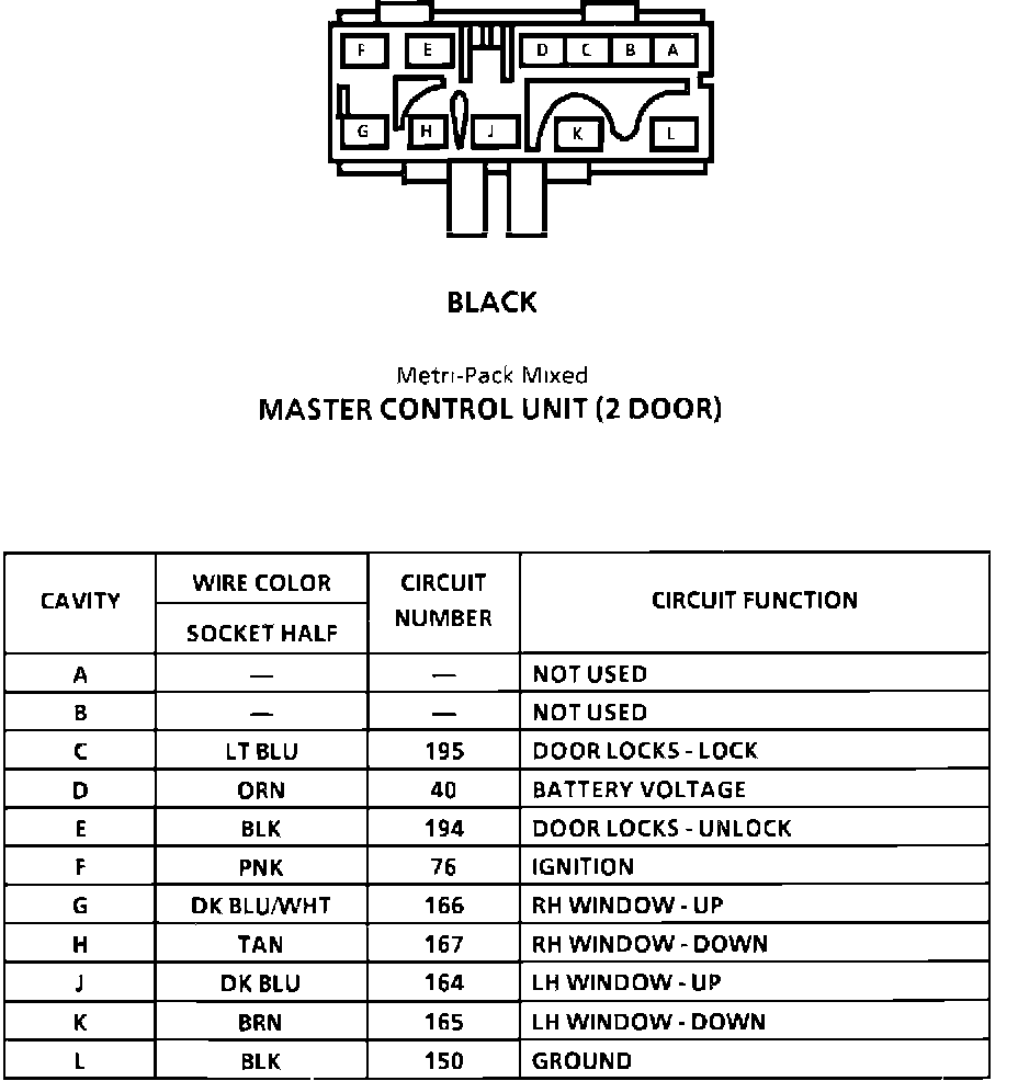 Master Control Unit (2 Door) Connector Faces: