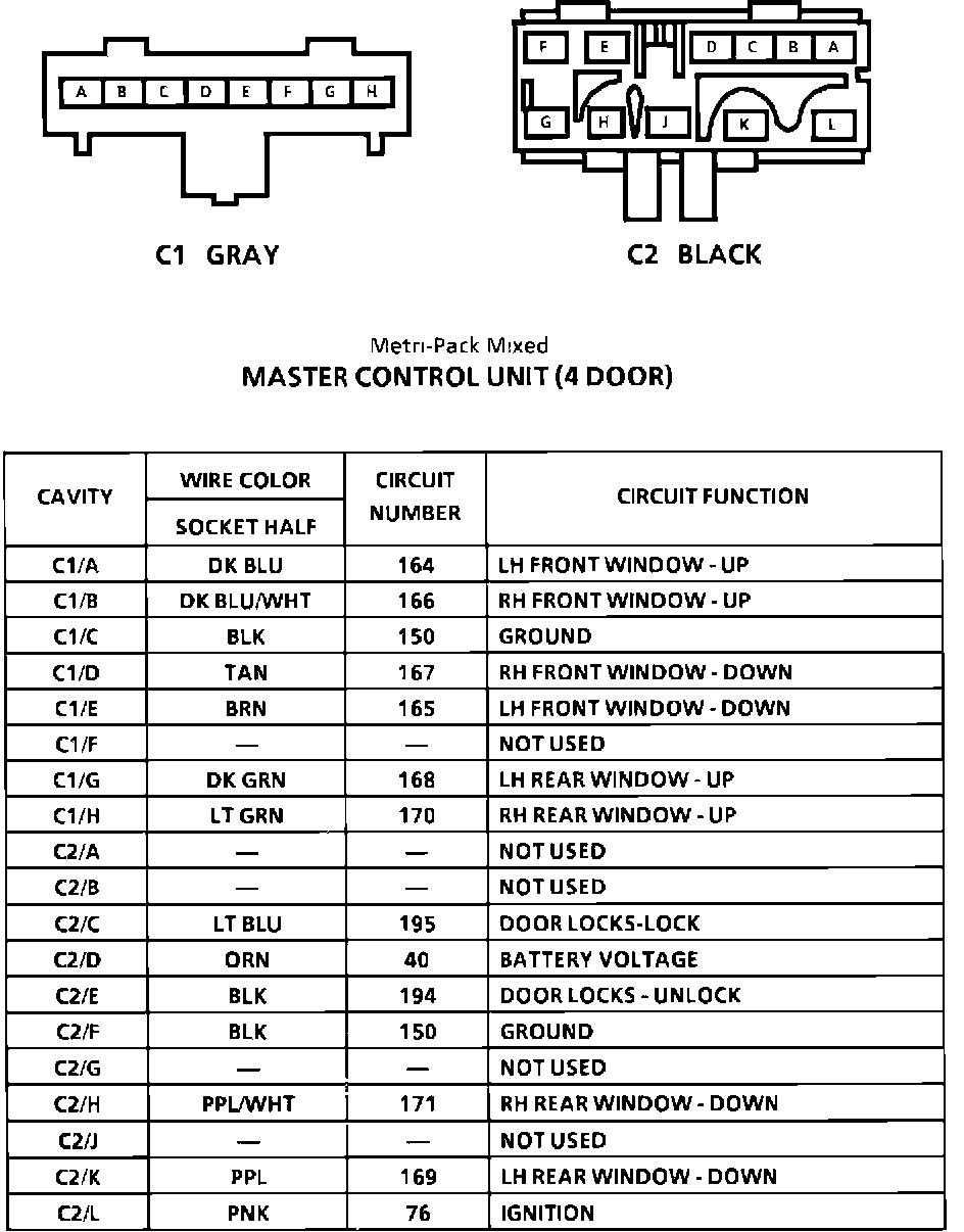 Master Control Unit (4 Door) Connector Faces: