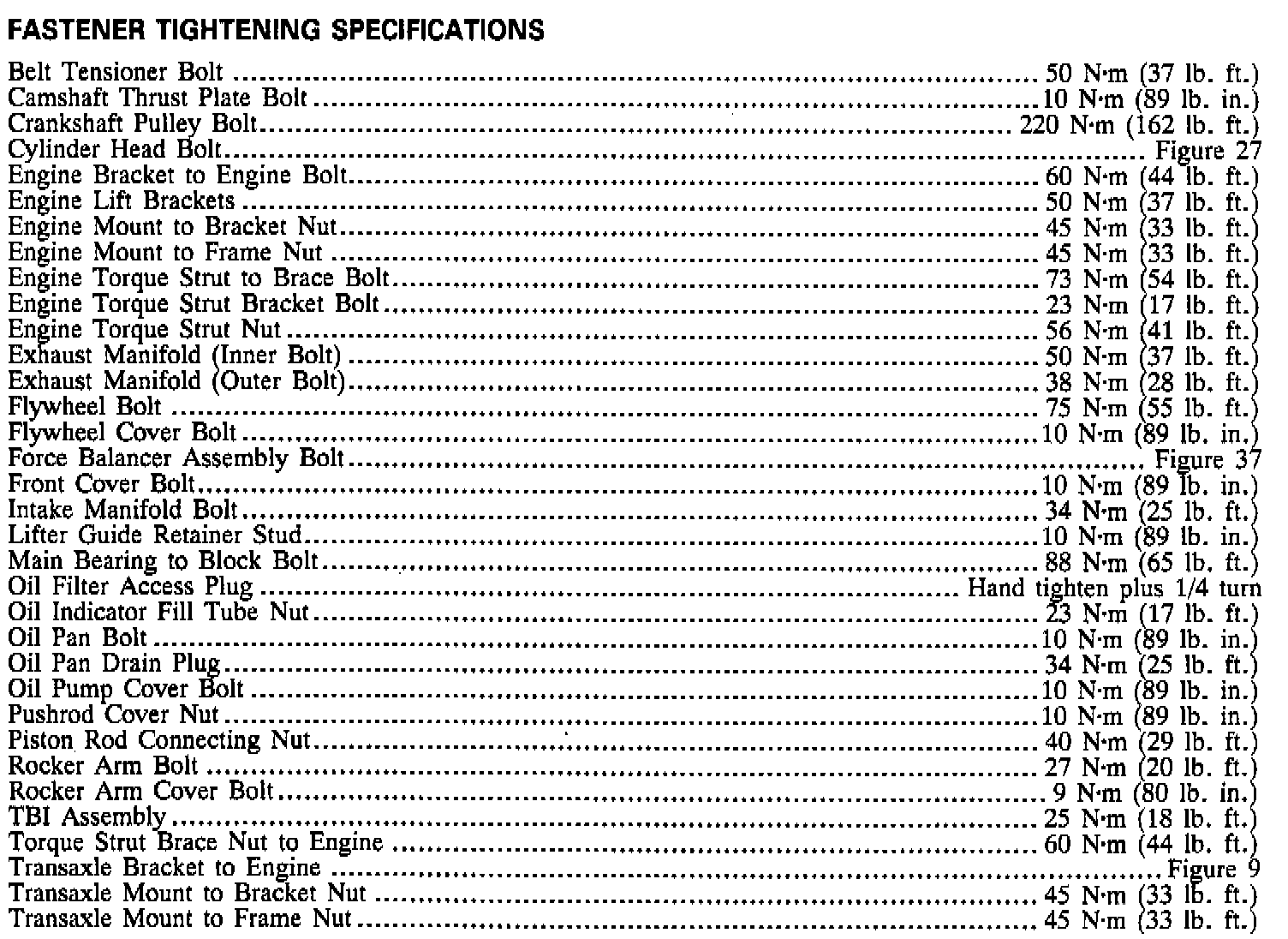 Torque Specifications: