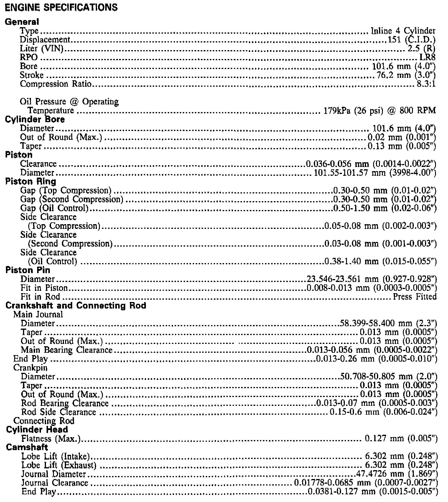 Engine Specifications:
