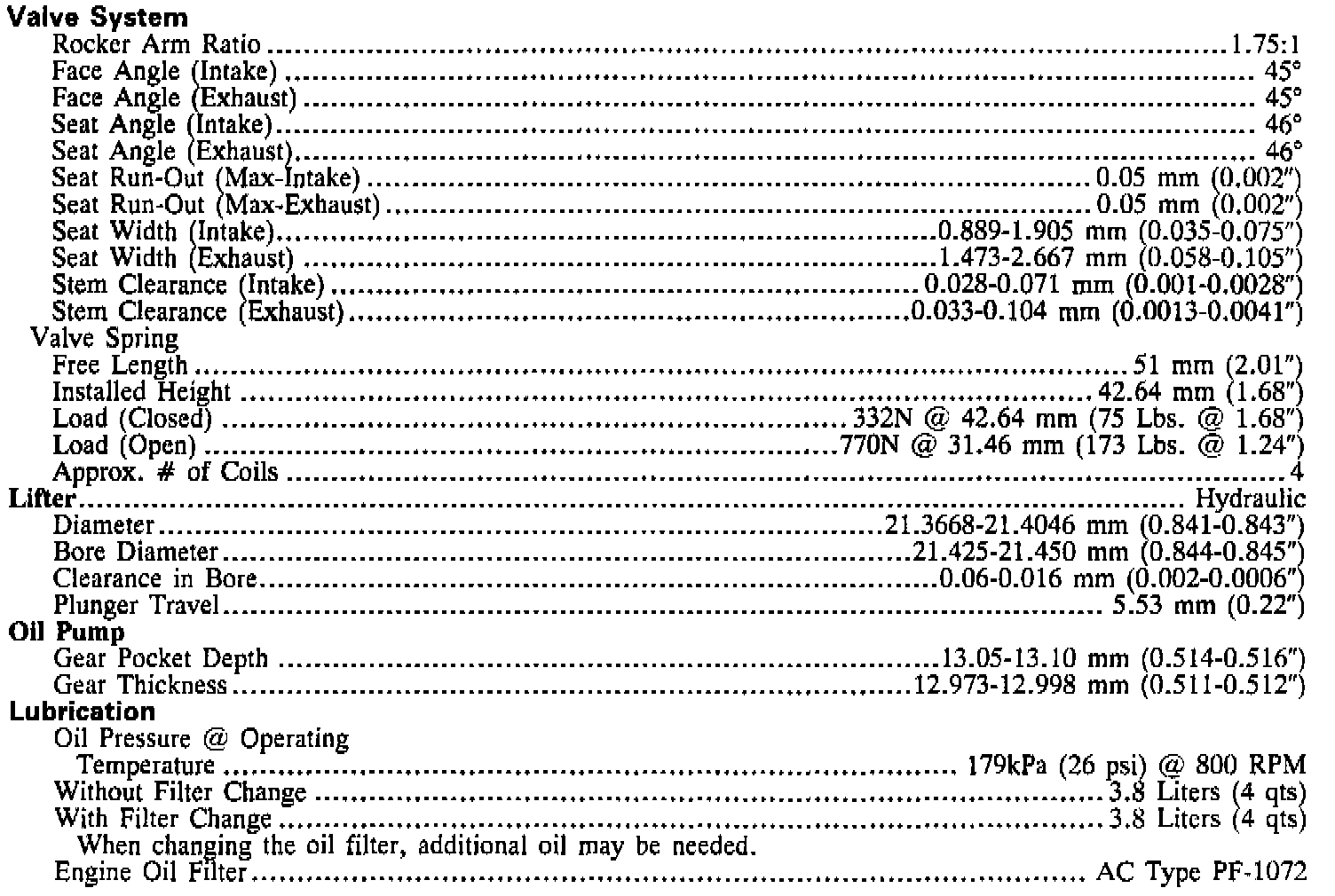 Engine Specifications (continued):