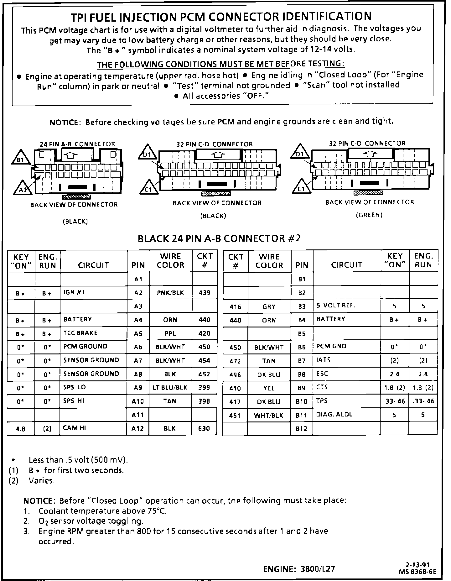 PCM Pin/Voltage Reference Chart (1 Of 2):