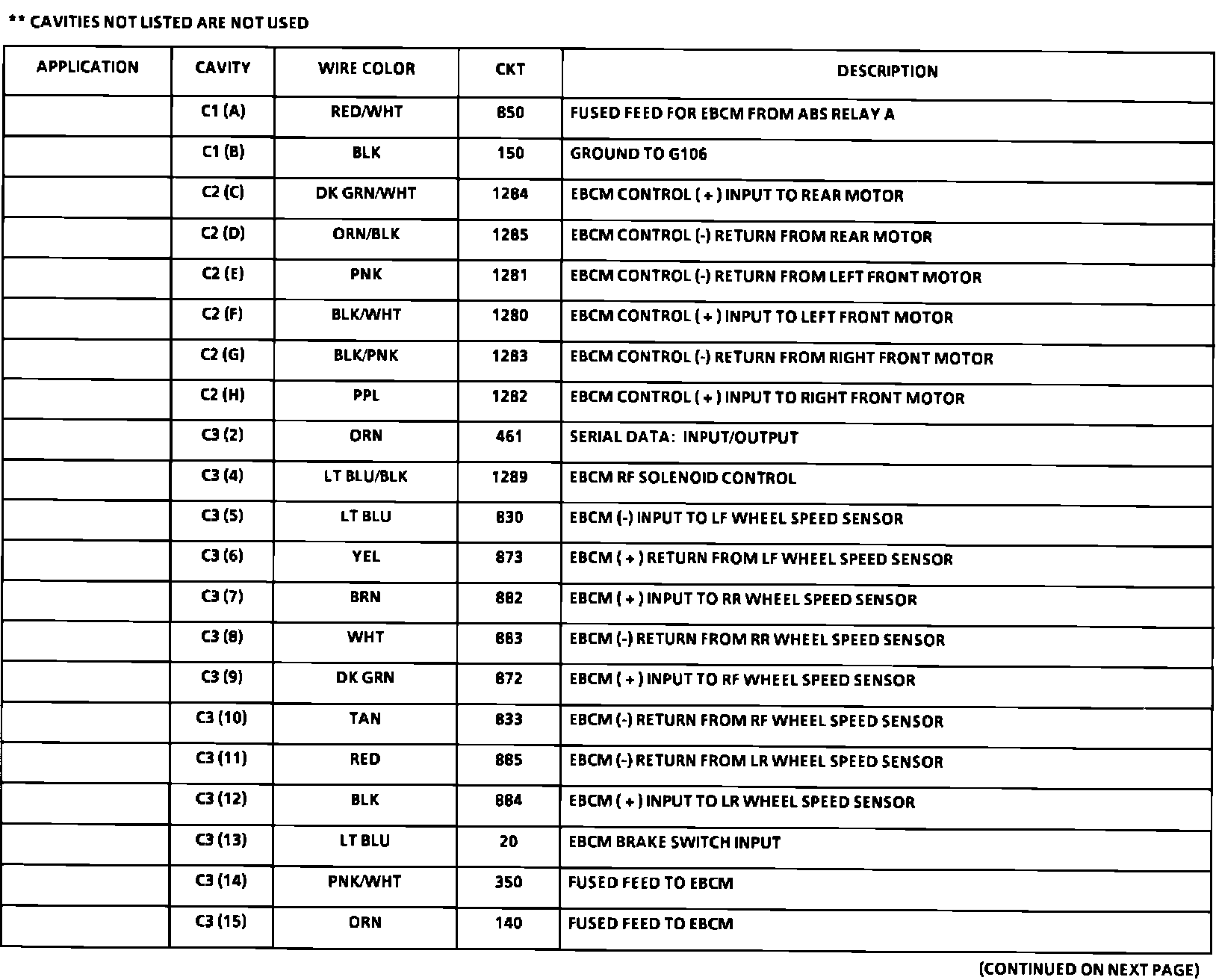Electronic Brake Control Module (EBCM) Connector: