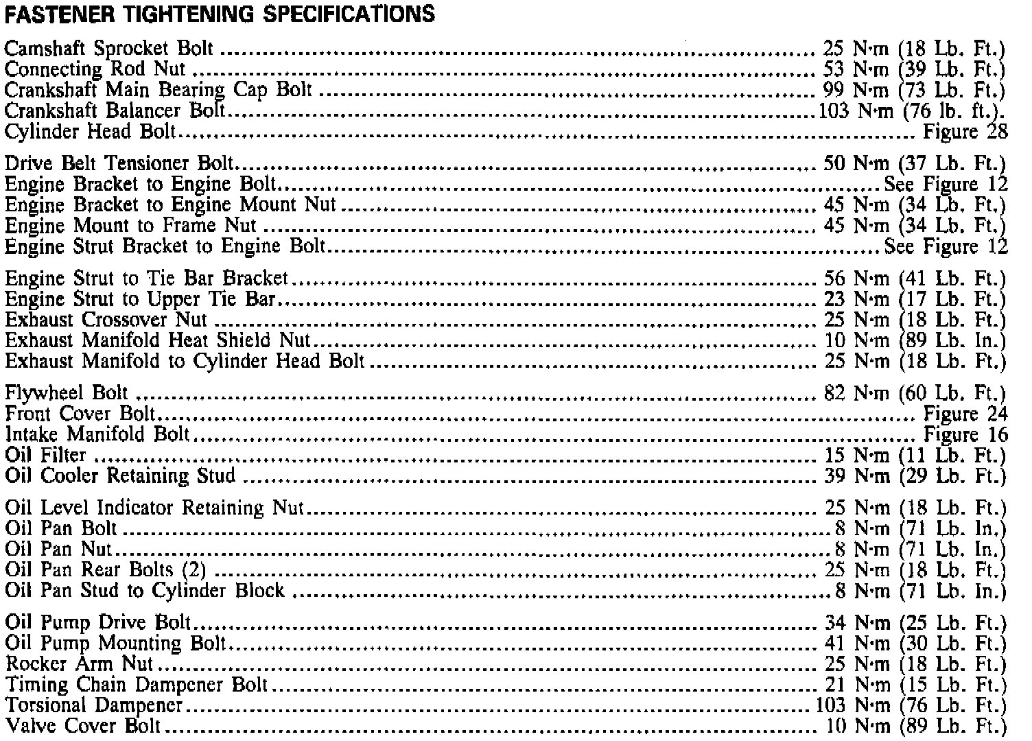 Torque Specifications: