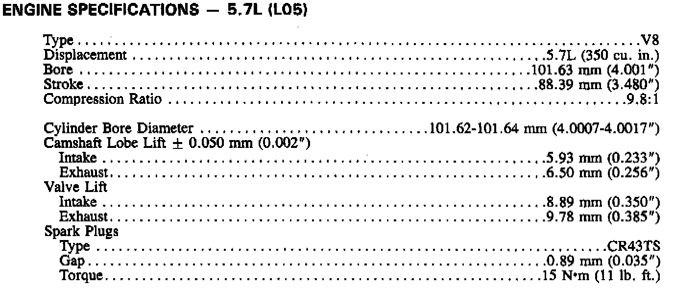 General Engine Specifications (continued):
