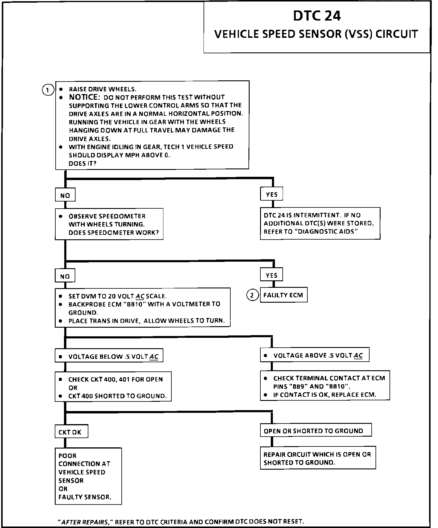 ^ Check circuits 400 and 401 for proper connections. Be sure they are clean and tight and the harness is routed correctly. - Intermittent Malfunctions