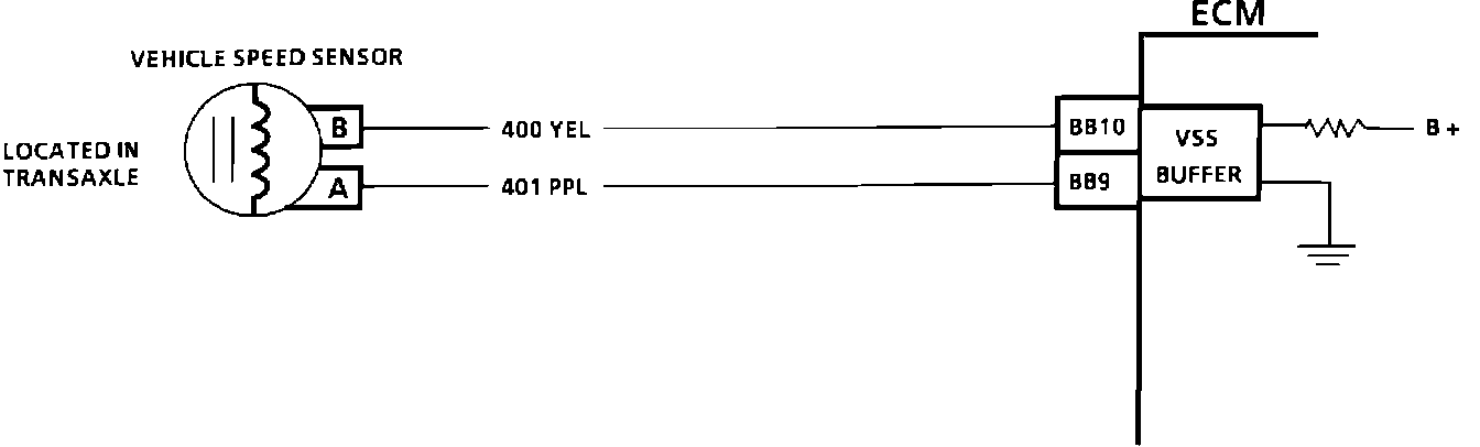 The function of VSS buffer used in past model years has been incorporated into the PROM portion of the ECM. The ECM supplies the necessary signals to the instrument panel (4004 pulses per mile) for operating the speedometer and cruise control.