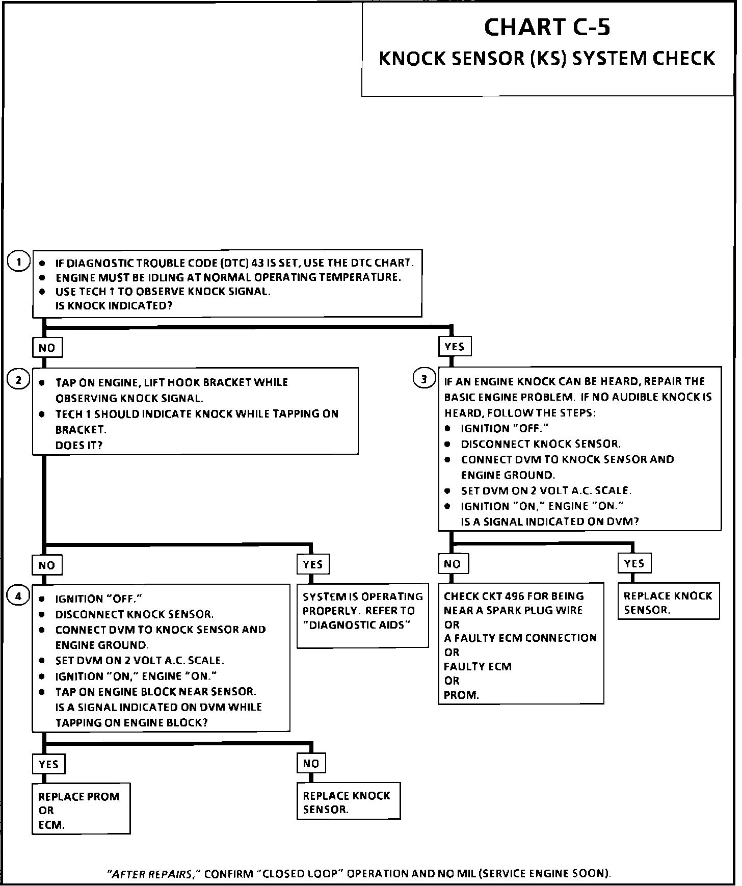 4. This test determines if the knock sensor is faulty or if the KS portion of the PROM is faulty. If it is determined that the PROM is faulty, be sure that it is properly installed and latched into place. If not properly installed, repair and retest.