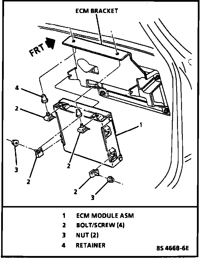 When replacing a production ECM with a service ECM, transfer the broadcast code and production number from the production unit to the service unit. Also during replacement, the MEM-CAL/PROM must be removed from the ECM being replaced and transferred to the new unit. Refer to MEMCAL for replacement procedures.