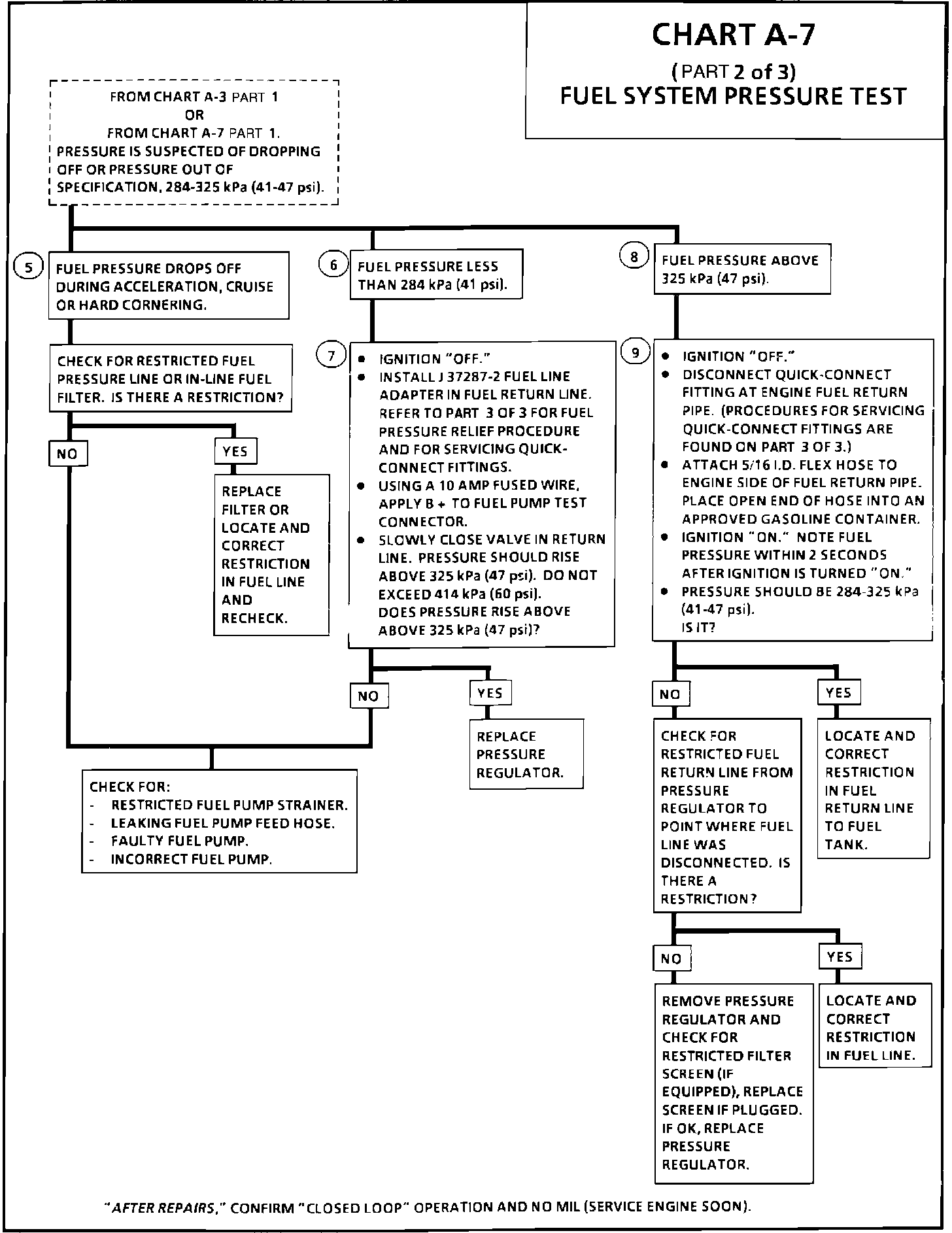 9. This test determines if the high fuel pressure is due to a restricted fuel return line or a pressure regulator problem.
