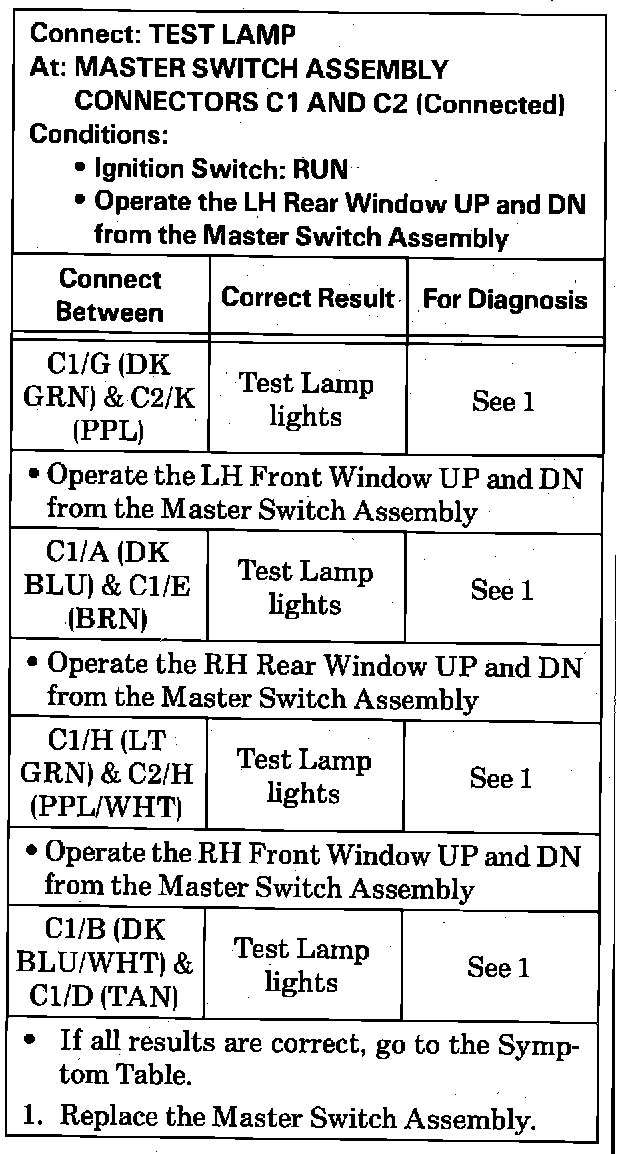Component Diagnostic Tests - Power Windows