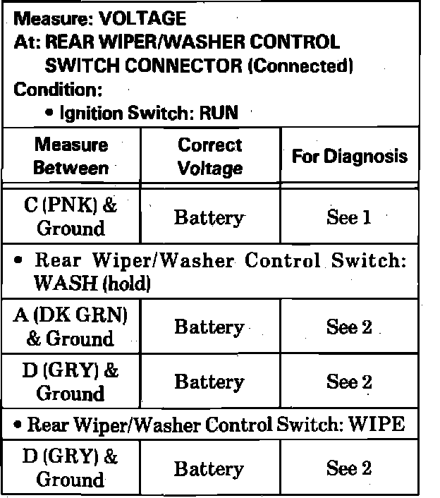 Test A: Rear Wiper/Washer Control Switch Test: