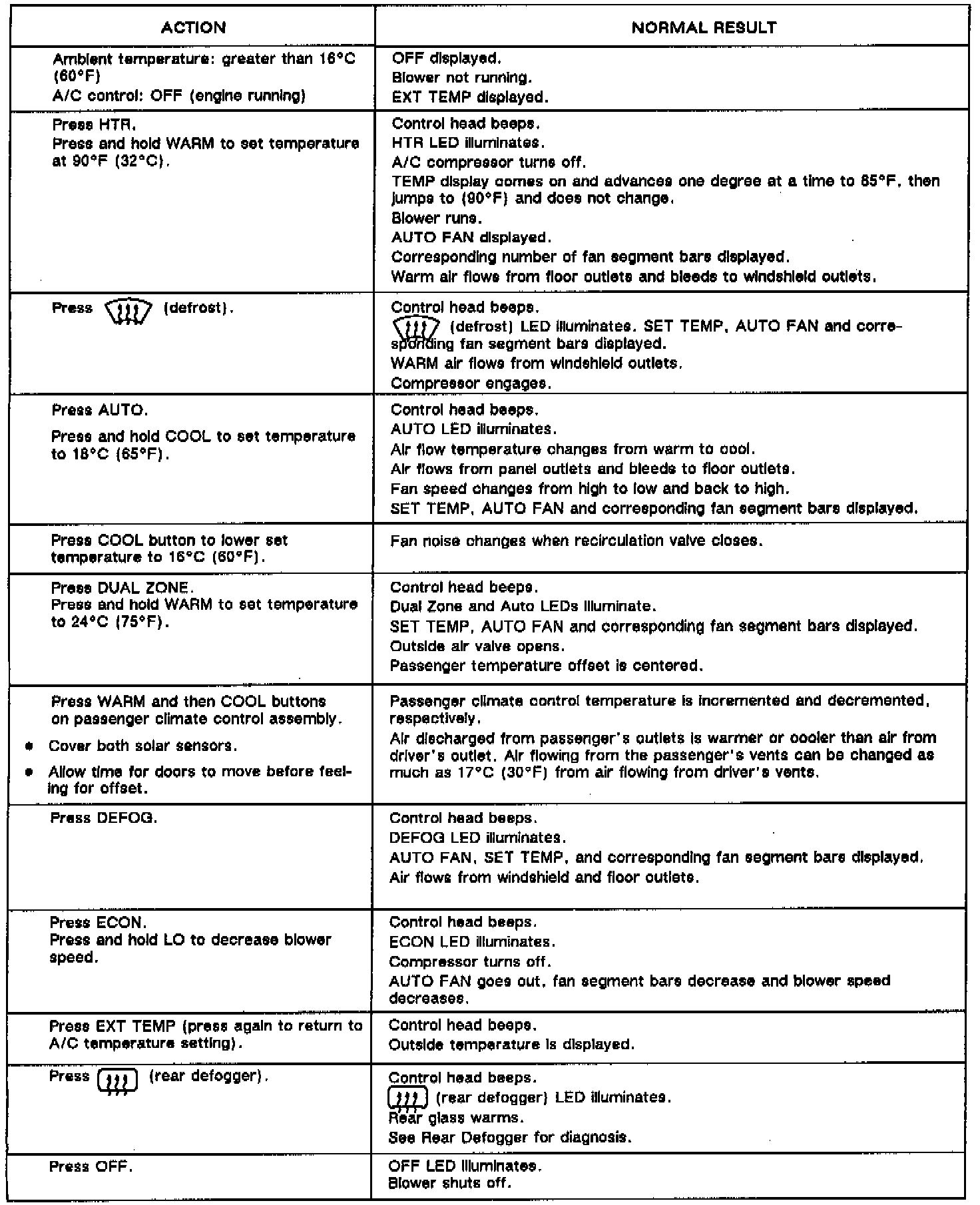 NOTE: If the results are NOT as illustrated in the Check refer to the Symptom Table for diagnosis guidance. HVAC System - Dual Zone
