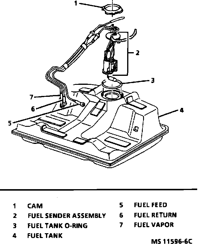 The fuel tank is located under the rear of the vehicle and is the fuel reservoir. The tank has a vertical baffle installed to support the filler tube and to serve as a slosh baffle. The fuel pump and fuel level sending unit assembly are mounted in the fuel tank as one assembly. The fuel tank assembly also consists of the fuel filler neck and filler cap.