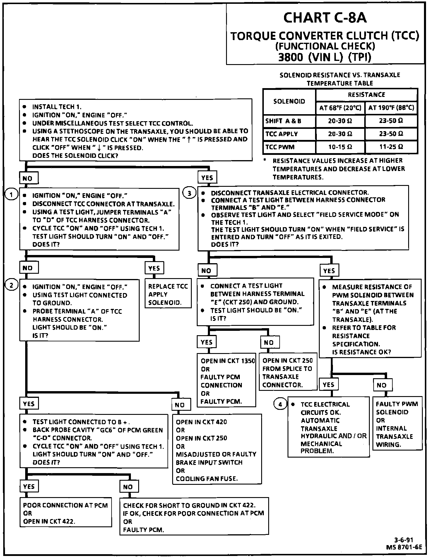 Chart C-8A, Torque Converter Clutch (TCC) Functional Check: