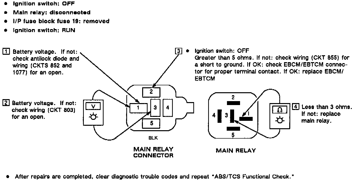 When the self-test is completed (and no faults are detected), the EBCM/EBTCM removes the ground at terminal 52, turning off the indicator. The main relay remains energized.