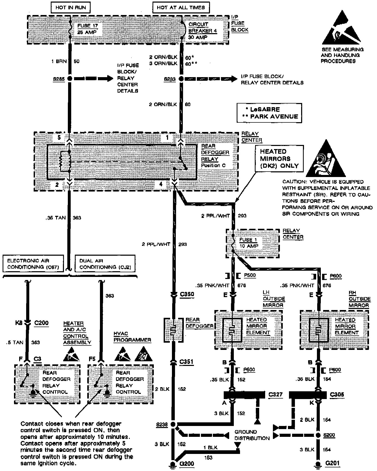 Rear Defogger And Heated Mirrors Wiring Diagram: