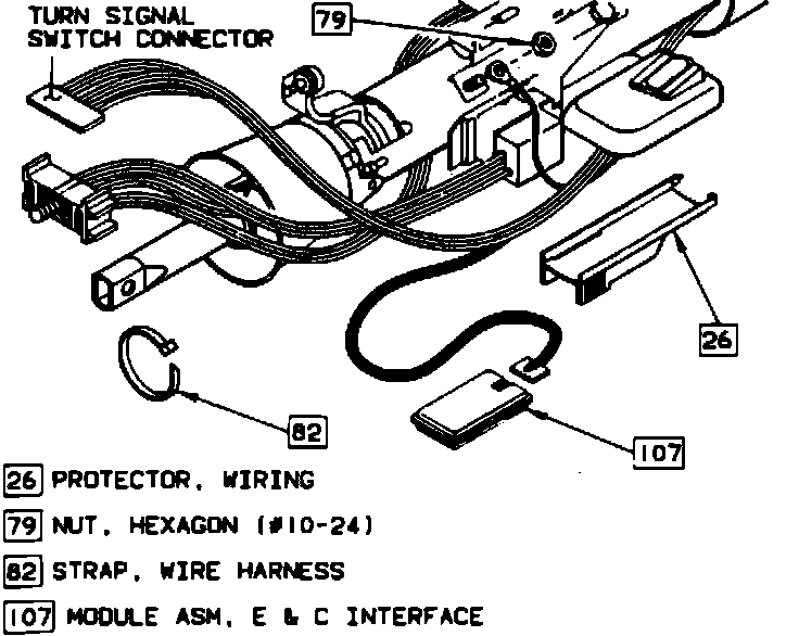 a. Disconnect turn signal switch connector from bulkhead connector and wire harness strap, Fig. 17.