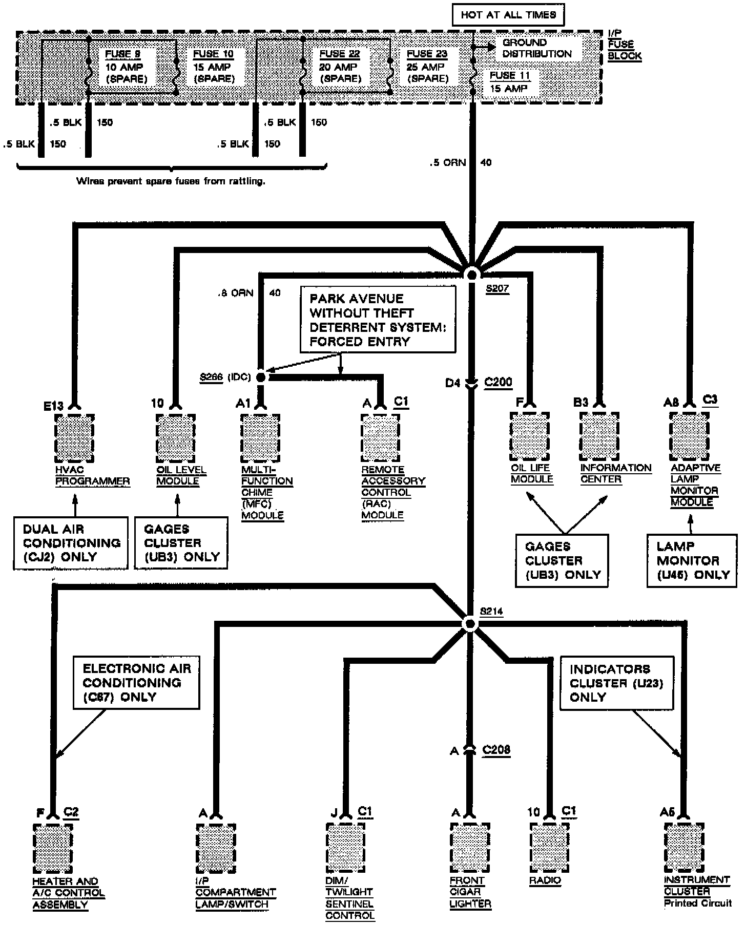 I/P Fuse Block: 9, 10, 11, 22, 23
