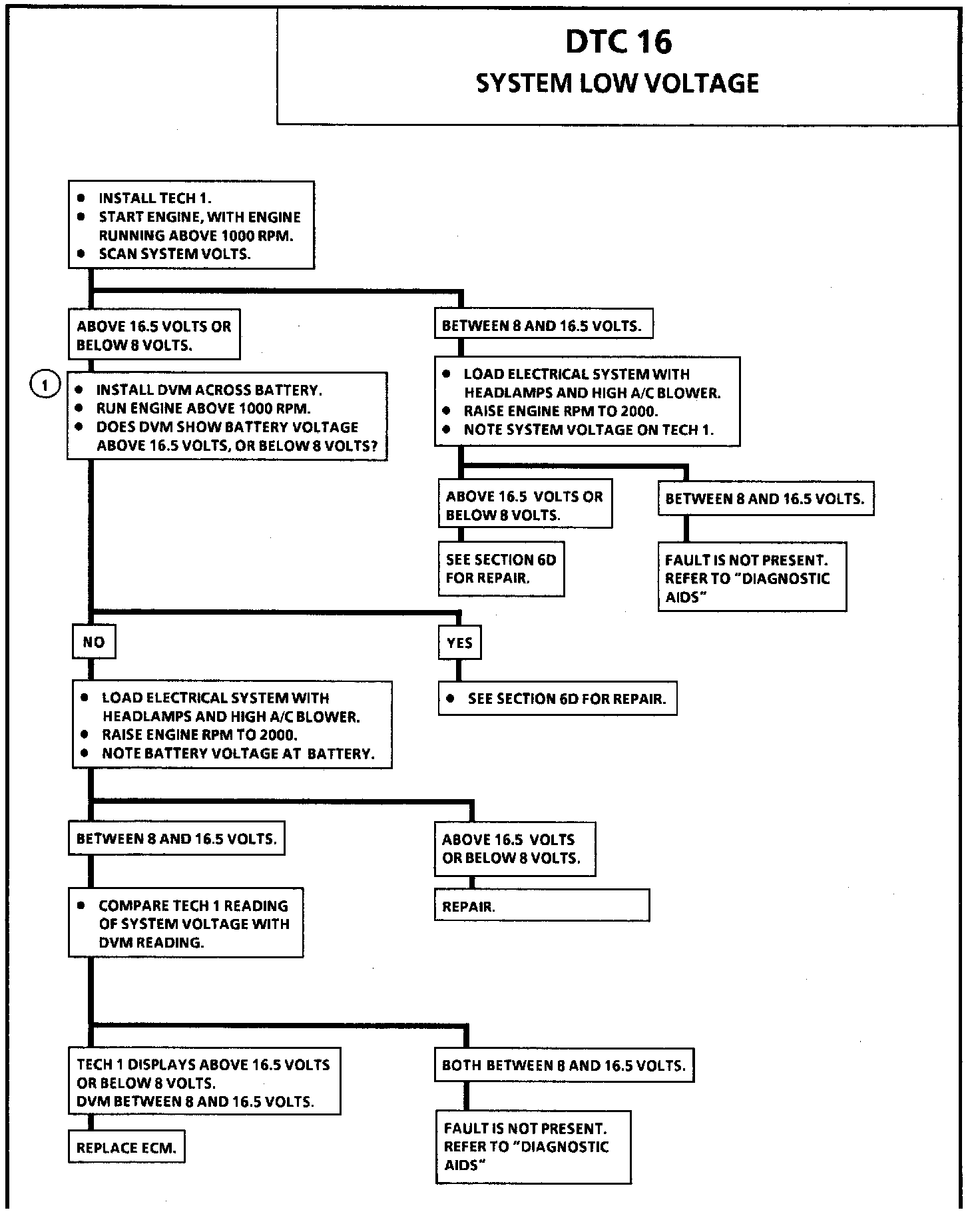 DTC 16 will set when the ignition is "ON" and the engine RPM is greater than 1000 and the ECM is seeing an ignition fuel reference voltage of less than 8 volts.