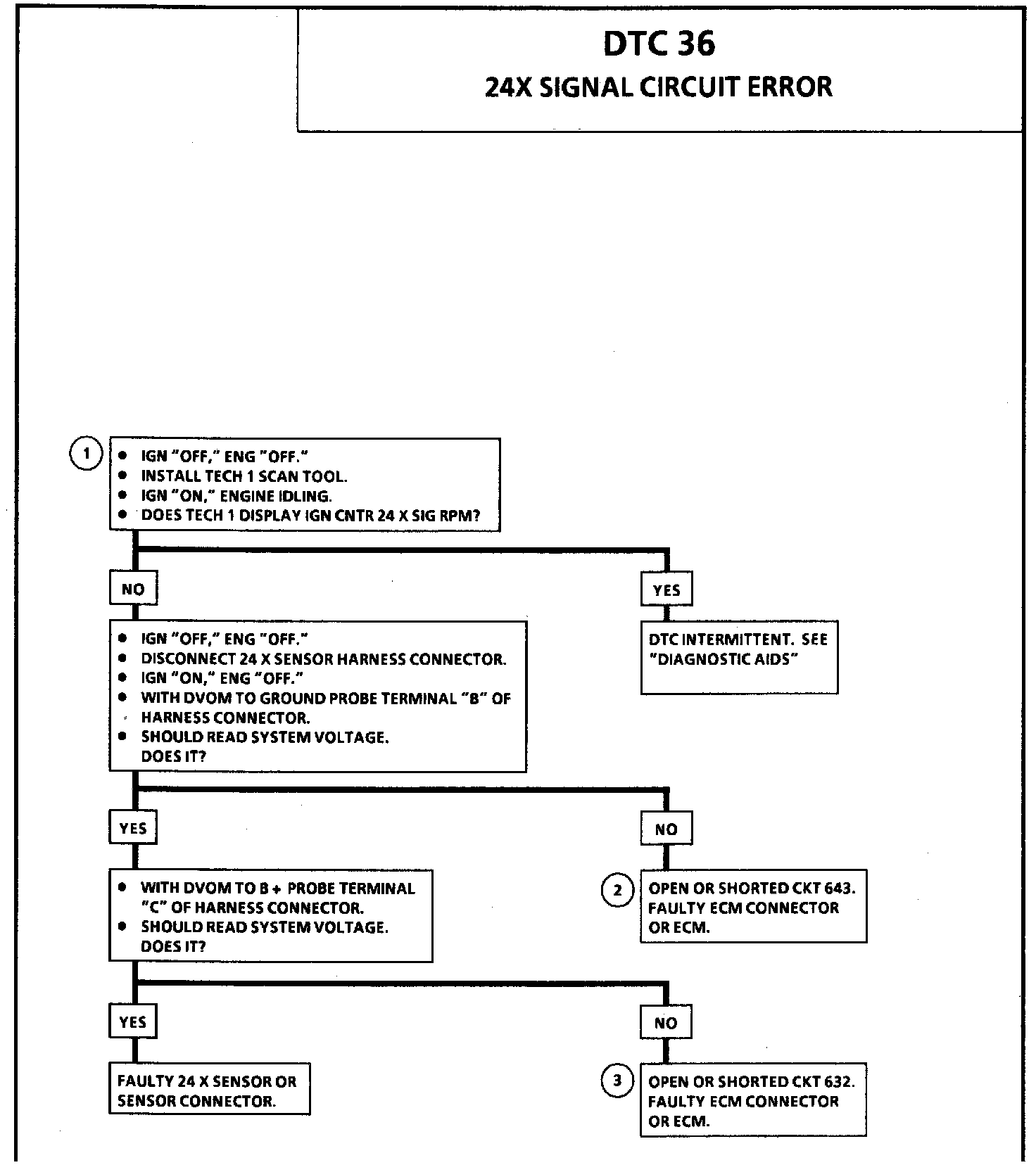 3. If CKT 632 is shorted to voltage, this will set both cam and 24X signal errors.
