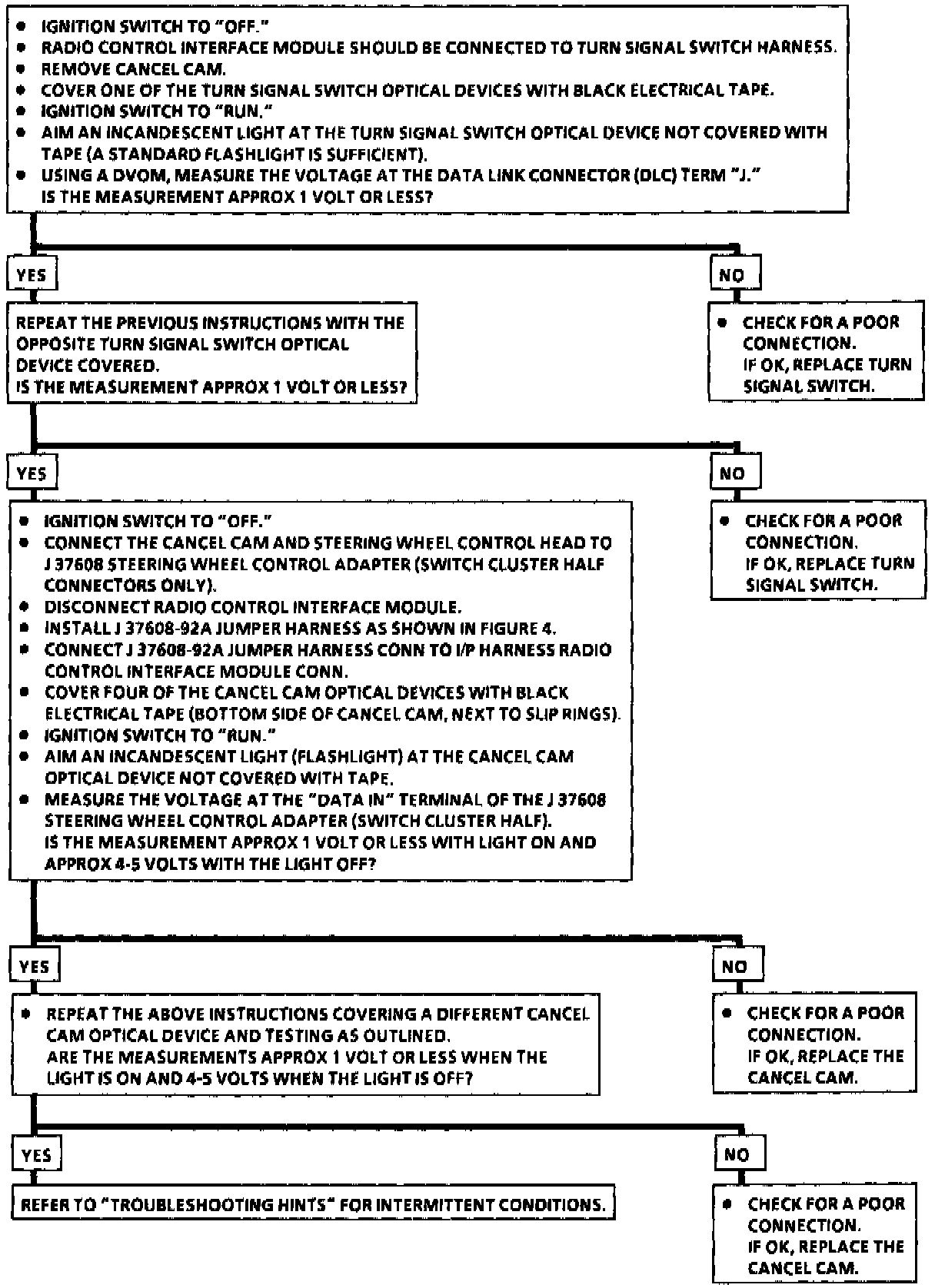 Chart 5 Turn Signal Switch/Cancel Cam Optical Test: