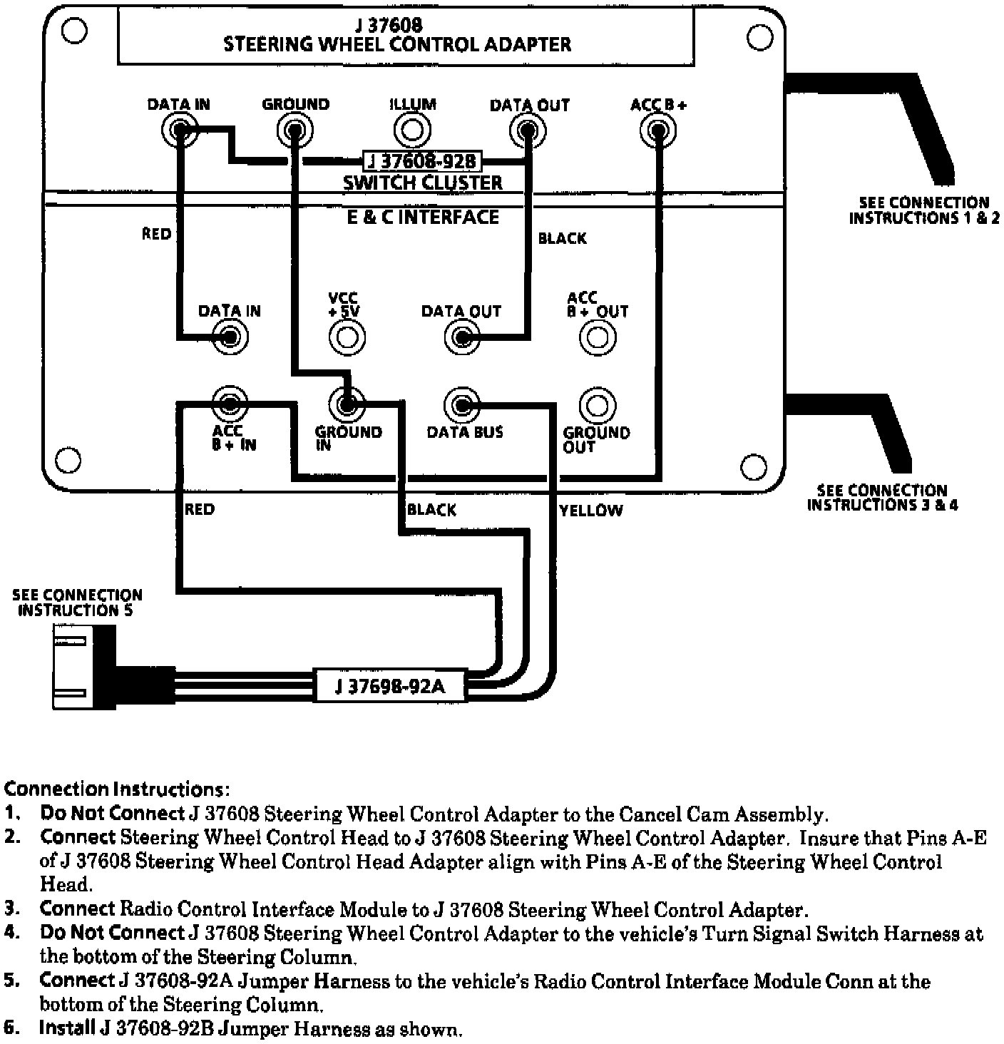 Steering Wheel Control Adapter Connections, J 37608