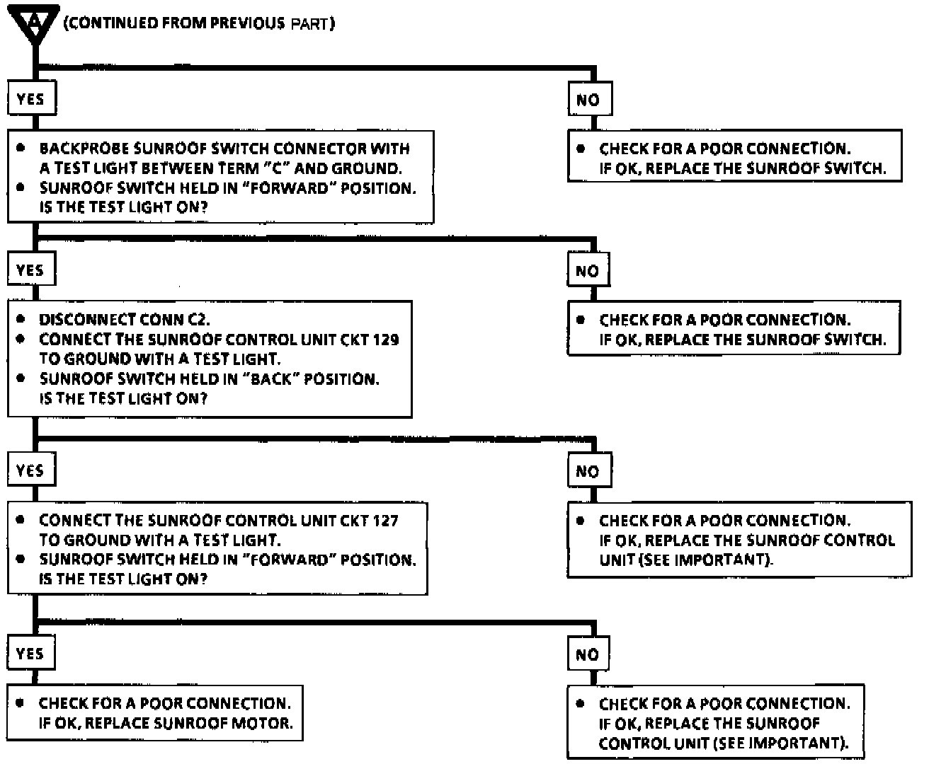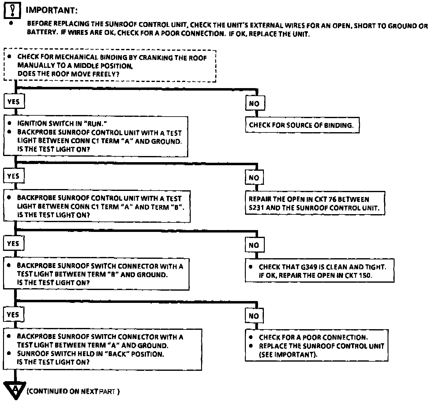 Chart 1 Sunroof Does Not Move When Switch Is Pressed NOTE: The Position Switch Generally Won't Prevent Motor From Running: